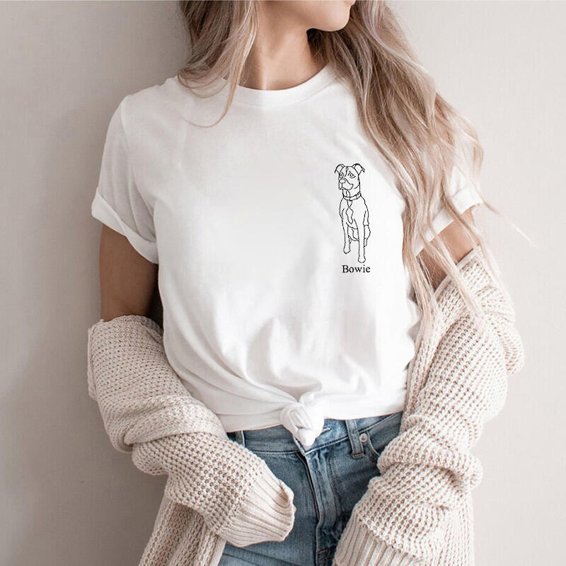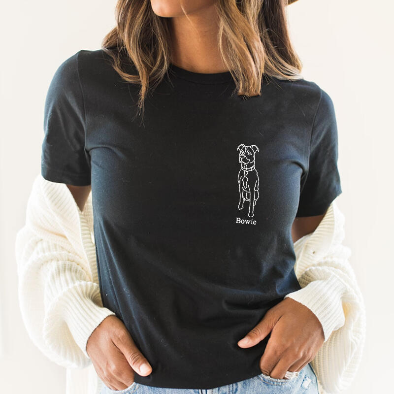 Personalized T-shirt Custom Embroidered Pet Contour Line Drawing Lovely Gift for Pet Lover