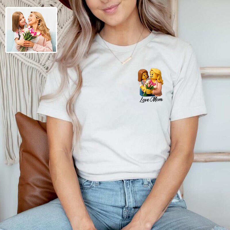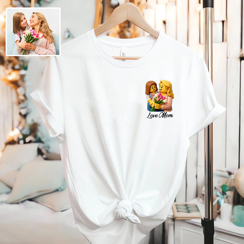 Personalized T-shirt Custom Mom and Kids Photo Building Block Style Design Cute Gift for Mommy