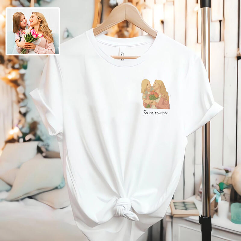Personalized T-shirt Custom Mom and Kids Photo Ghibli Anime Style Design Warm Gift for Dear Mama