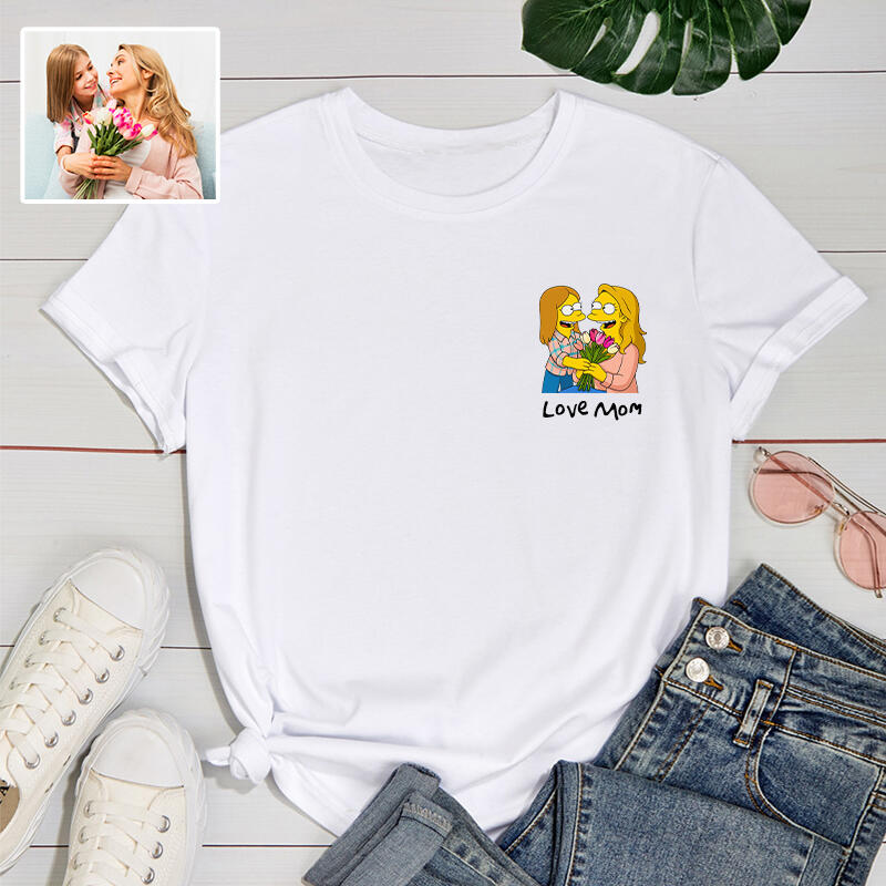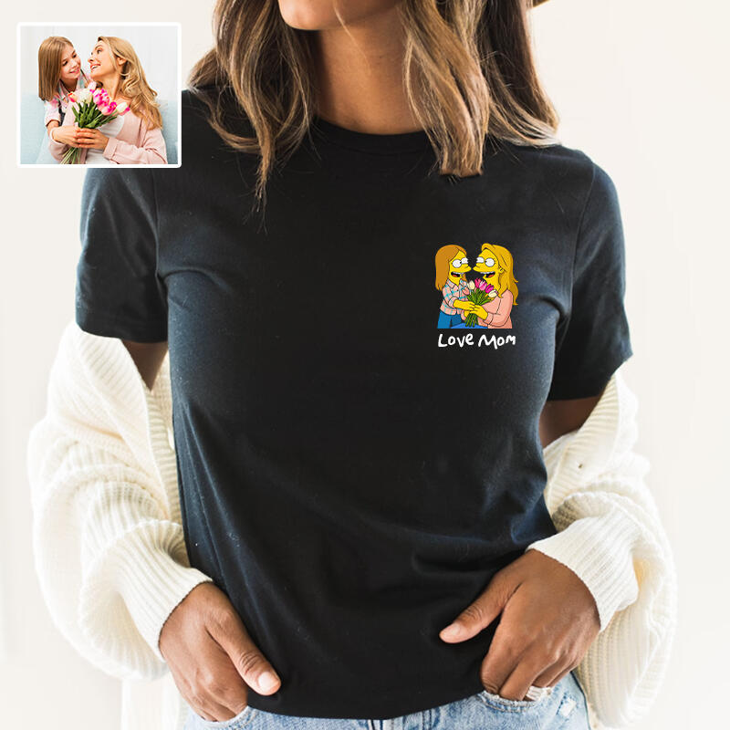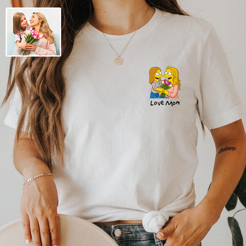 Personalized T-shirt Custom Mom and Kids Photo Simpson Cartoon Style Design Funny Gift for Mother