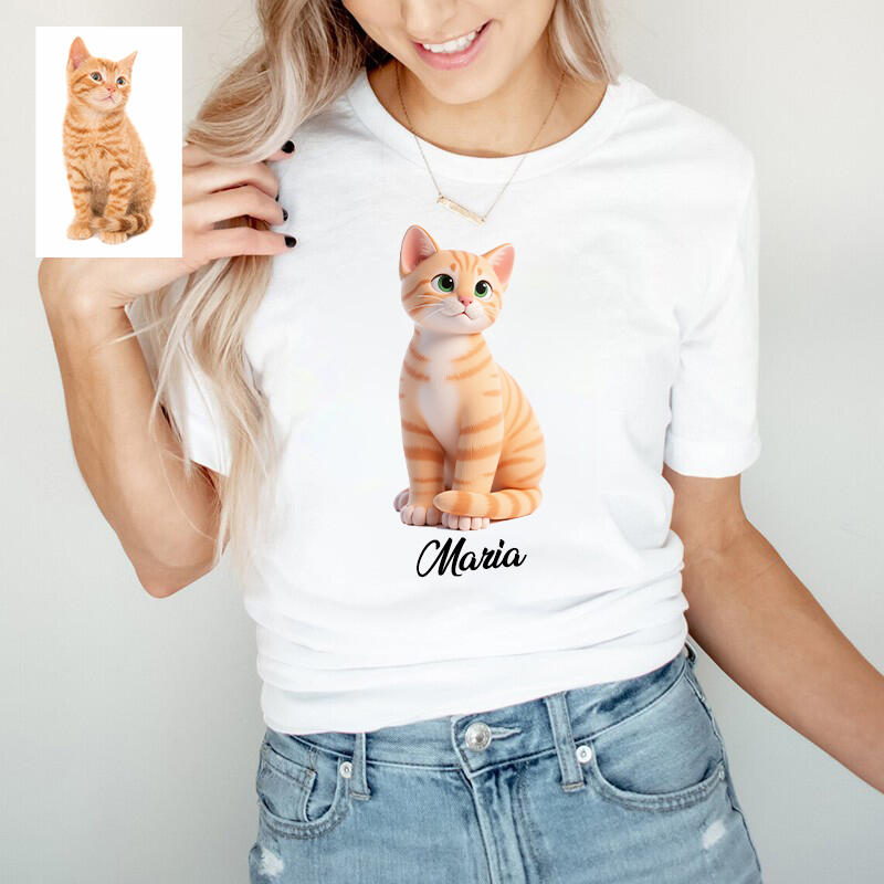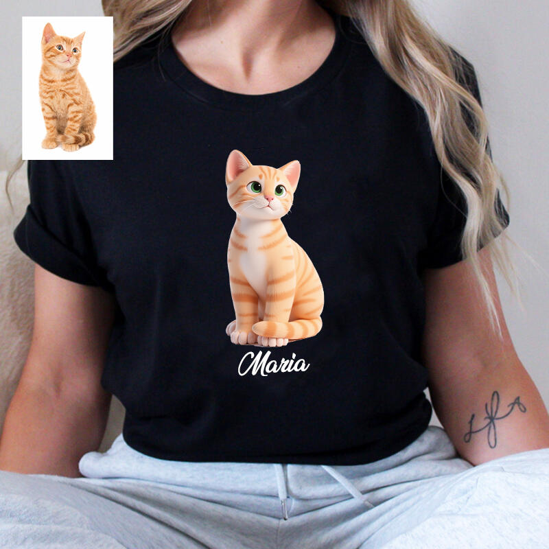 Personalized T-shirt Custom Pet Photo 3D Cartoon Style Design Adorable Gift for Pet Lovers