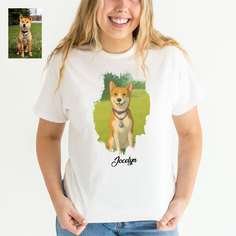 Personalized T-shirt Custom Pet Photo Ghibli Anime Style Design Warm Gift for Pet Lovers