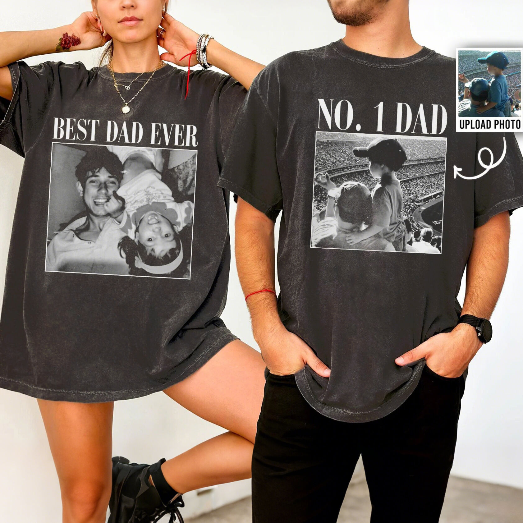 Personalized T-shirt Custom Photo Dad and Kids Vintage Style Design Chic Gift for Him Father