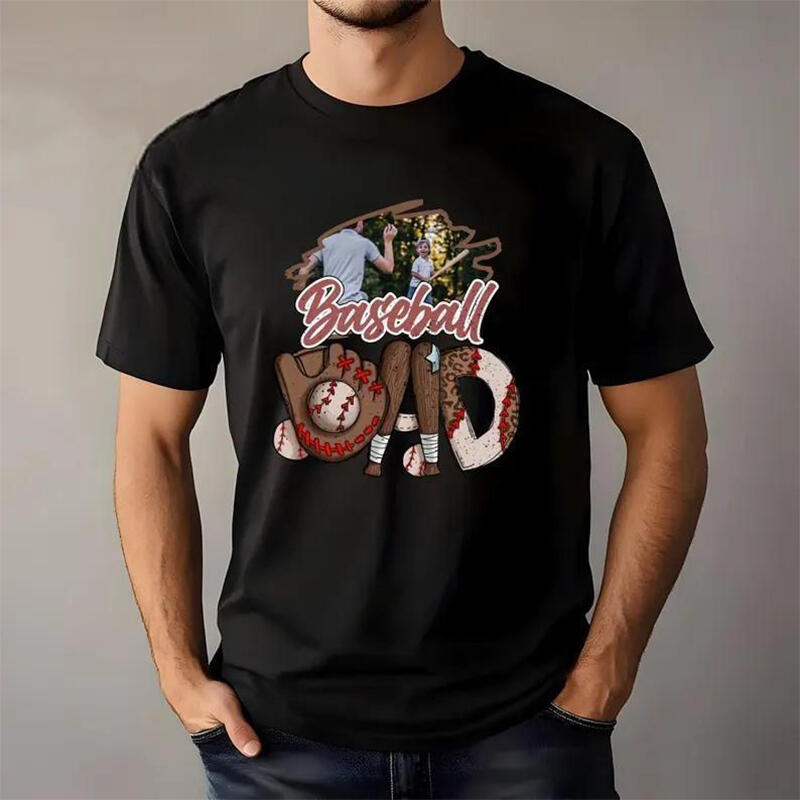 Personalized T-shirt Custom Photo Dad Baseball Bat and Glove Design Creative Gift for Baseball Dad