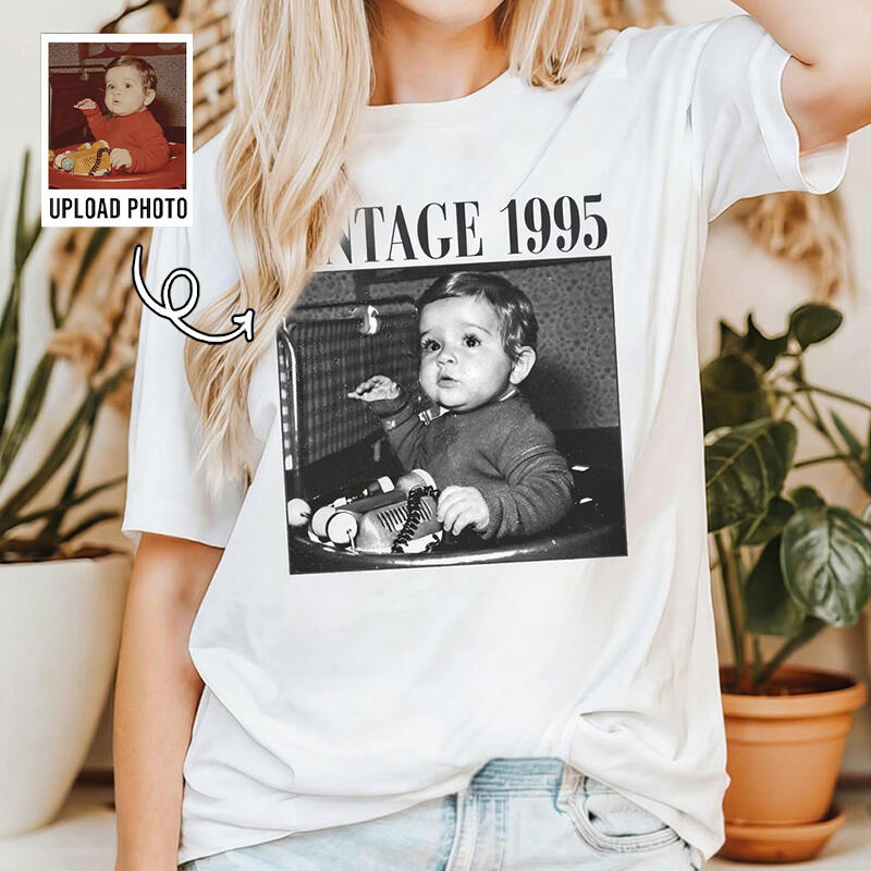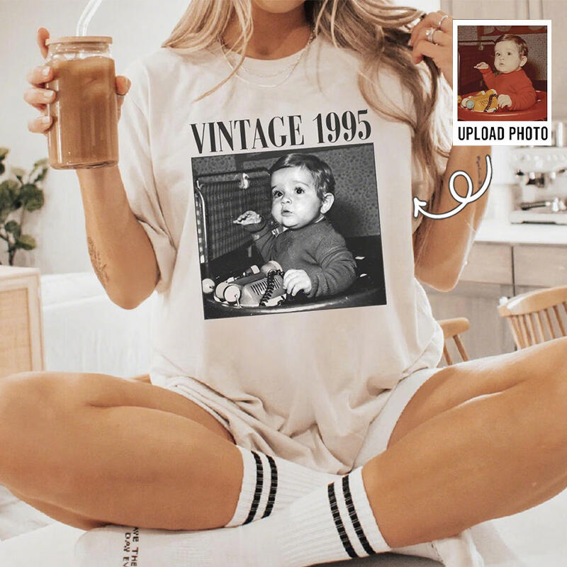 Personalized T-shirt Custom Photo Design Your Own Vintage Style Attractive Gift for Her Mom Friends