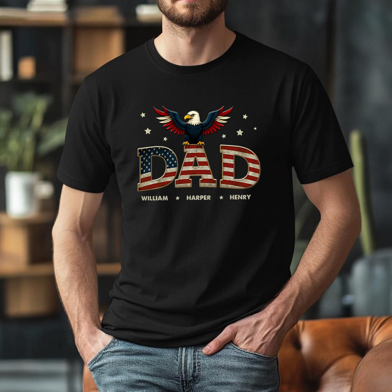 Personalized T-shirt Dad Stars and Stripes Eagle Elements Design Attractive Gift for Best Father
