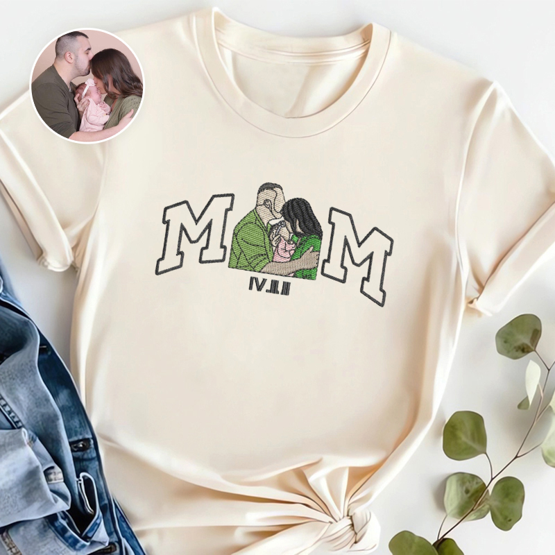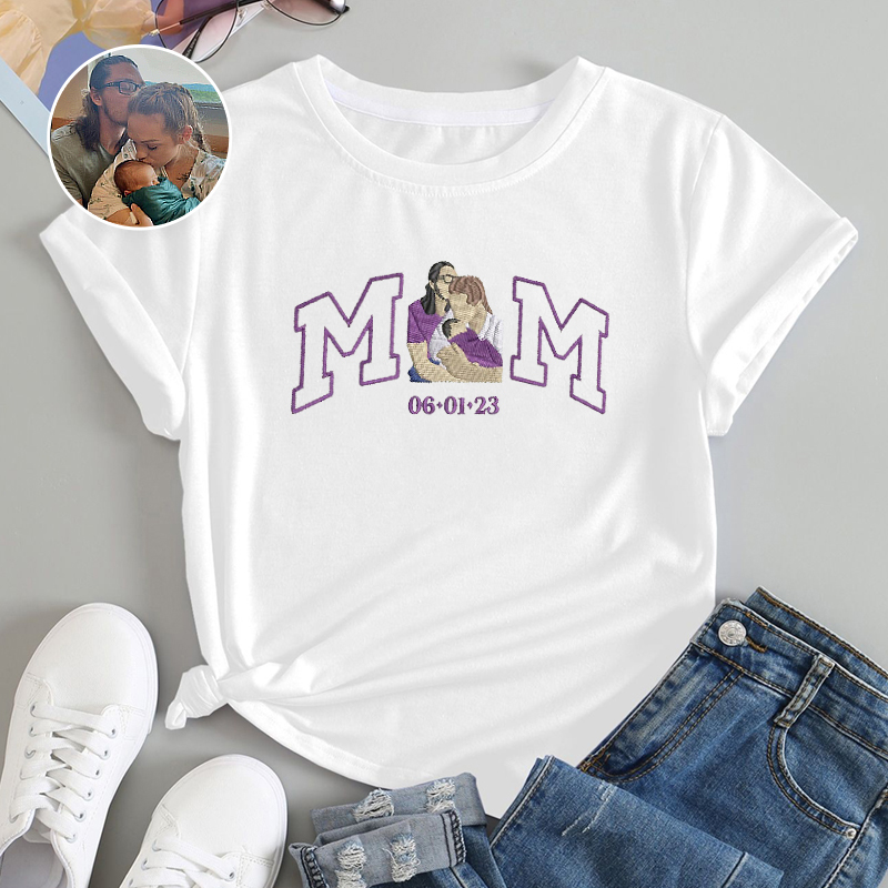Personalized T-shirt Embroidered Custom Family Photo with Your Message Design Perfect Mother's Day Gift