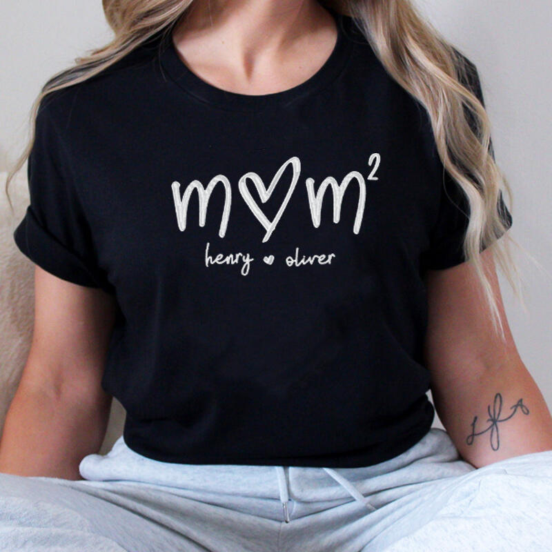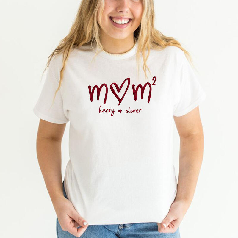 Personalized T-shirt Embroidered Custom Mom with Children Name Design Creative Mother's Day Gift