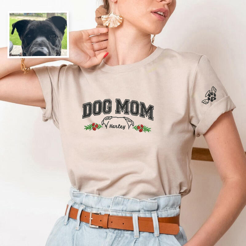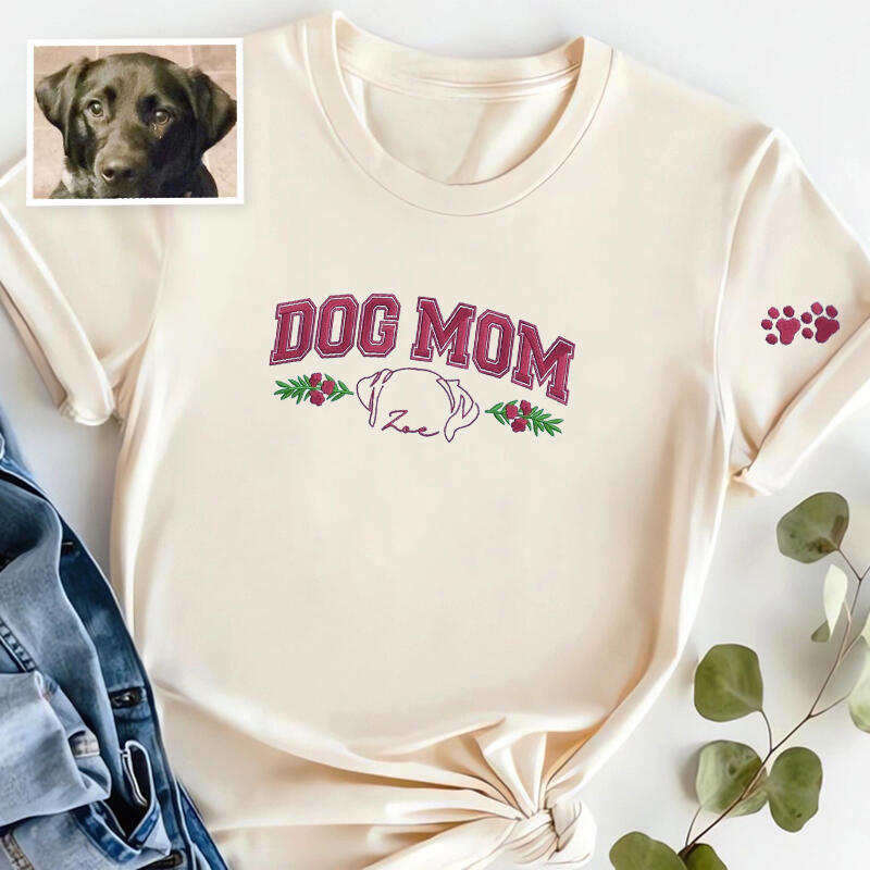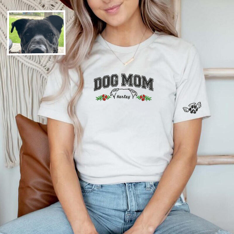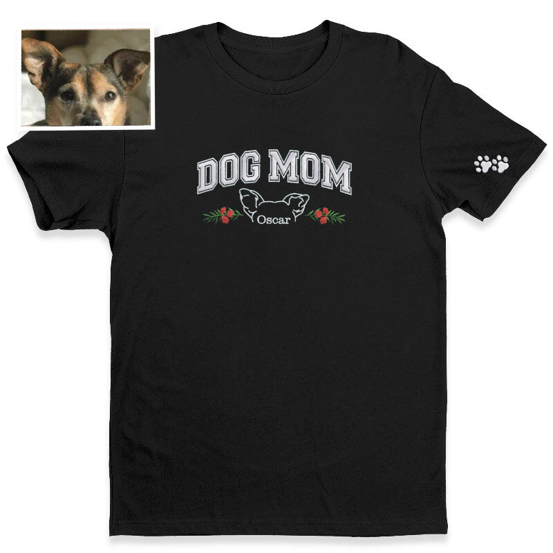 Personalized T-shirt Embroidered Dog Mom Custom Pet Ear Outline Design Great Gift for Pet Lover Mama