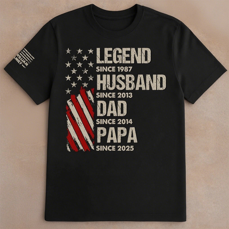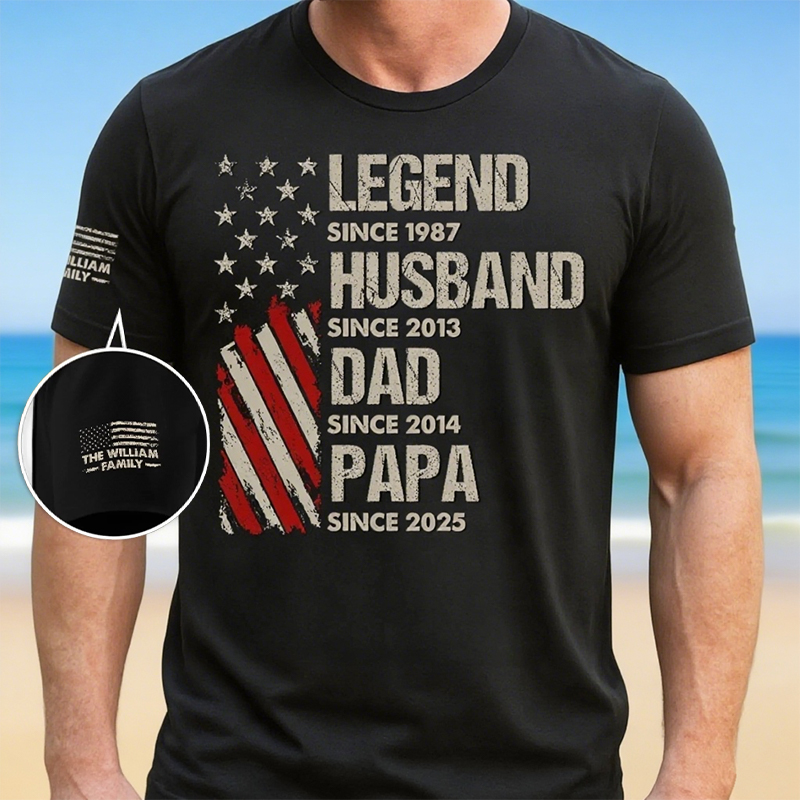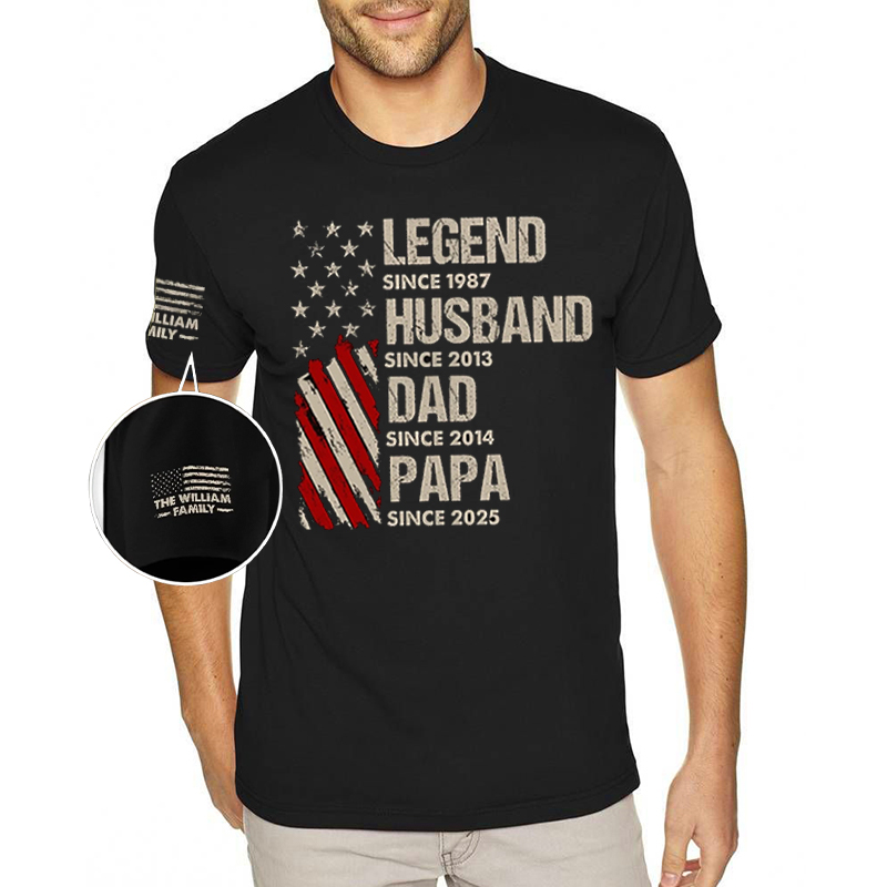 Personalized T-shirt From Legend To Papa Stars and Stripes Elements Design Perfect Gift for Dear Dad