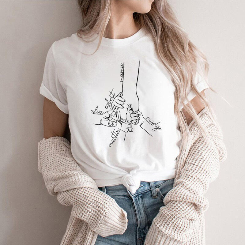 Personalized T-shirt Hold Your Hand with Custom Name for Best Mom