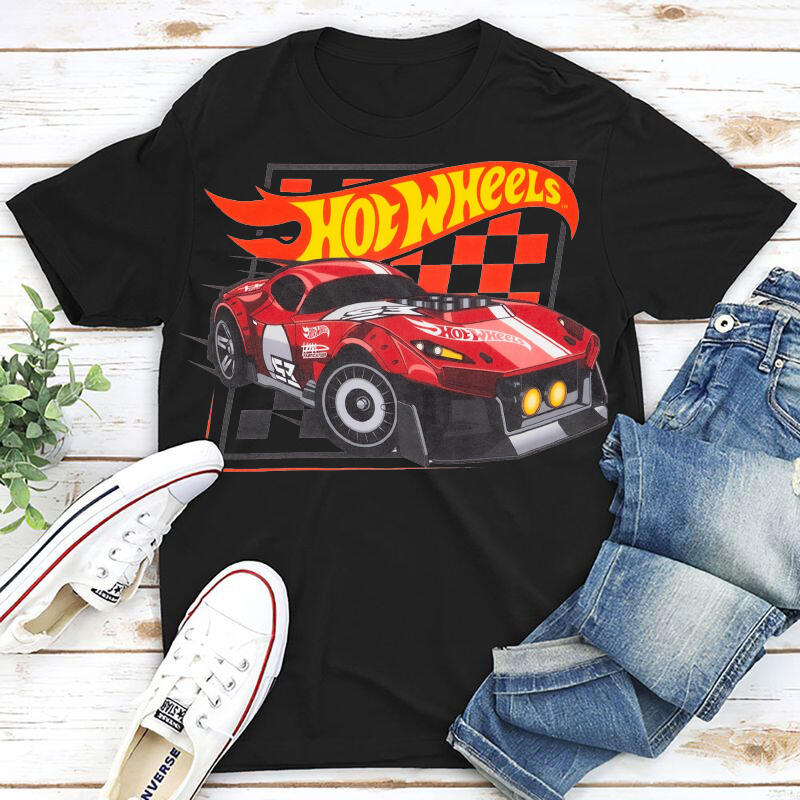 Personalized T-shirt Hot Wheels Red Cool Racing Car Pattern Design Perfect Gift for Car Lovers