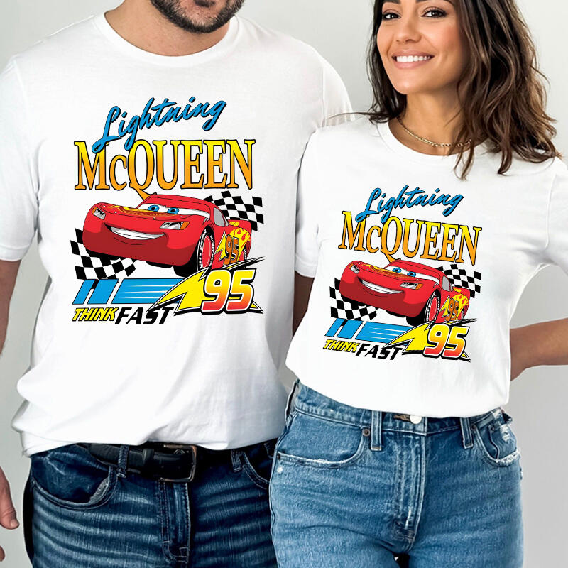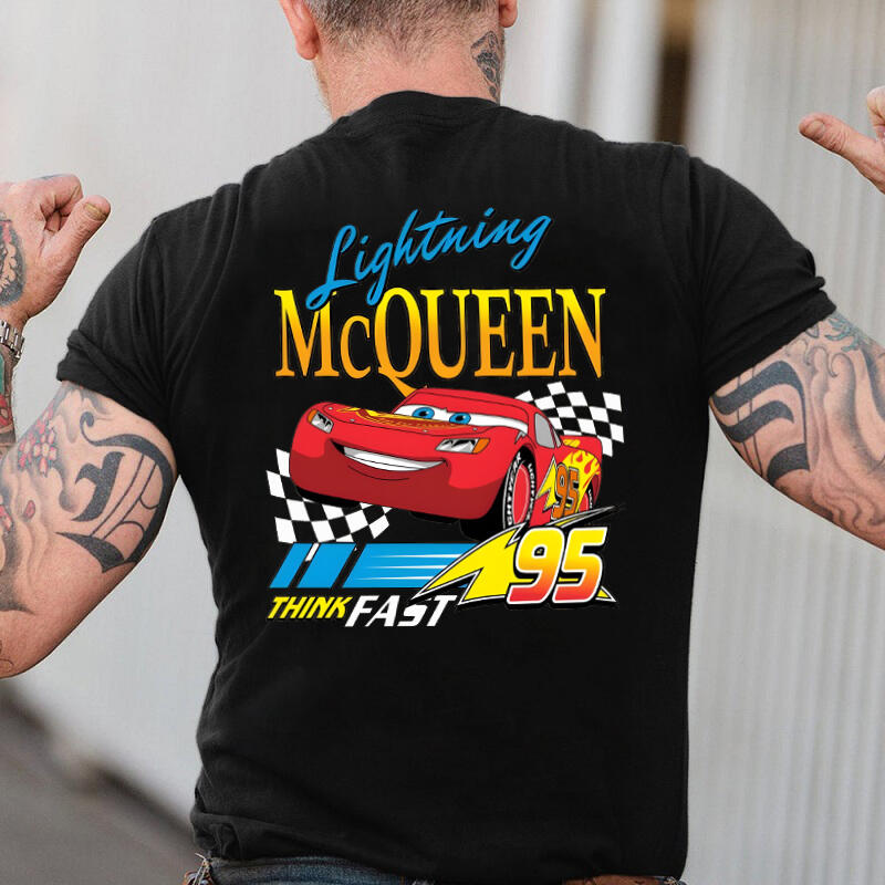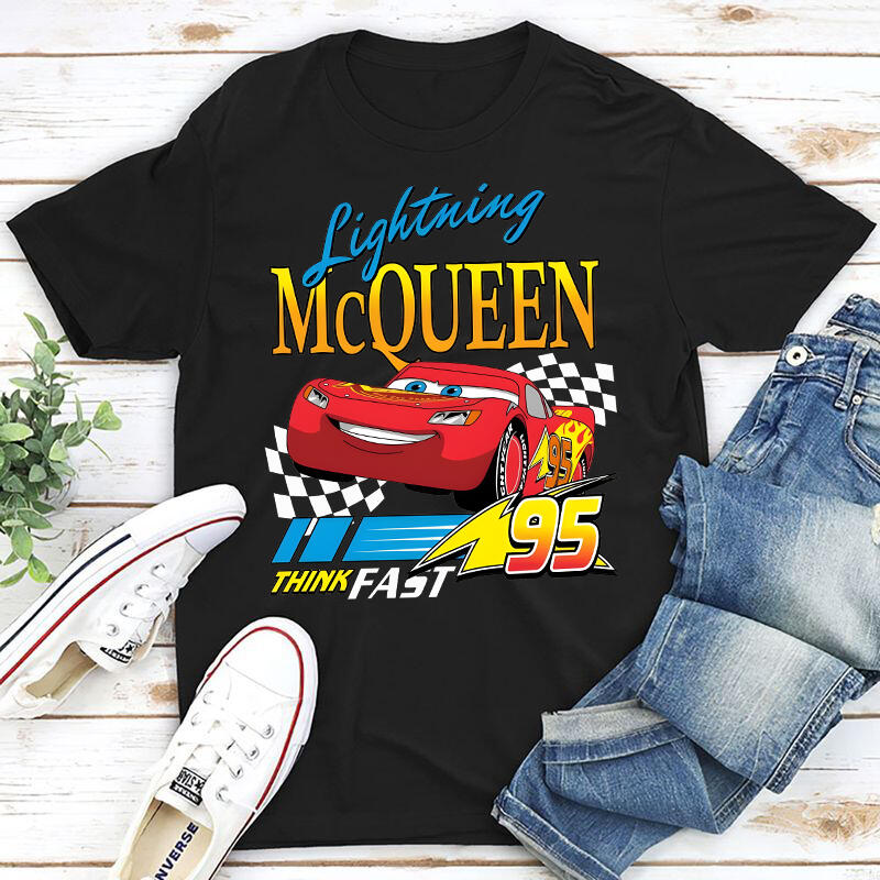 Personalized T-shirt Lightning McQueen Think Fast Colorful Pattern Design Cool Gift for Car Lovers