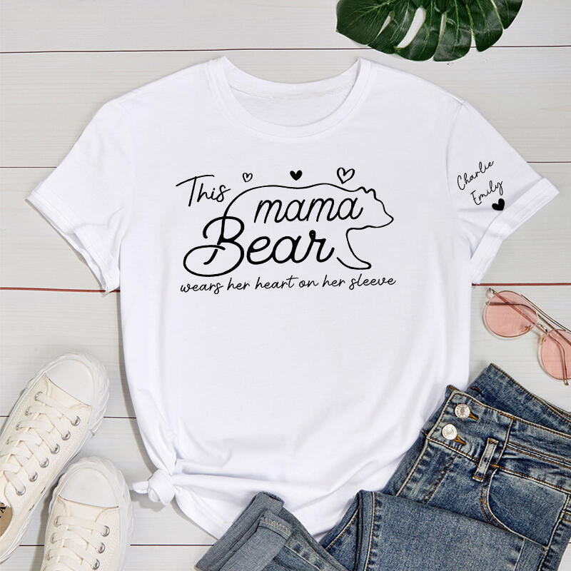 Personalized T-shirt Mama Bear Wears Her Heart On Her Sleeve Adorable Gift for Mother's Day