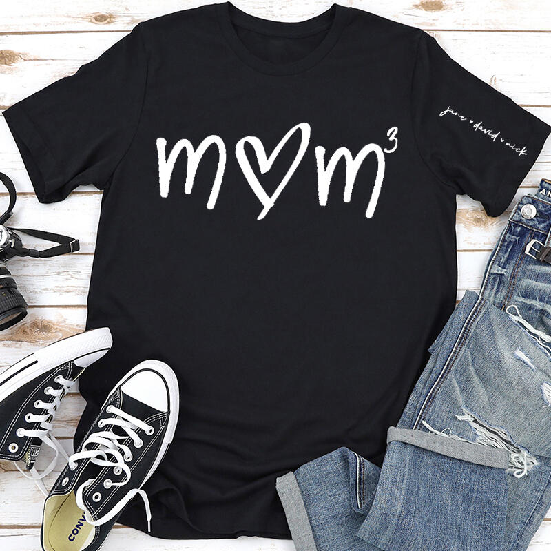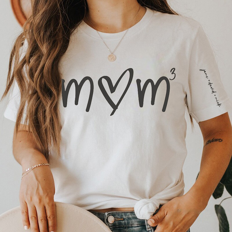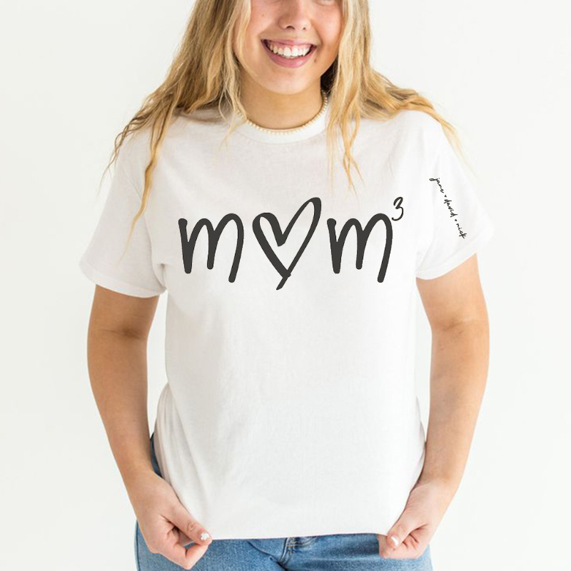Personalized T-shirt Mom Heart with Kids Name on The Sleeve Unique Design Perfect Mother's Day Gift
