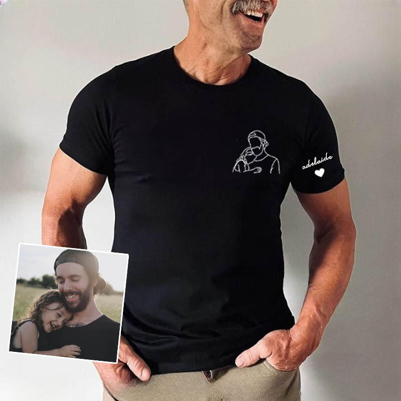 Personalized T-shirt Picture Line Design with Custom Name On The Sleeve for Dear Dad