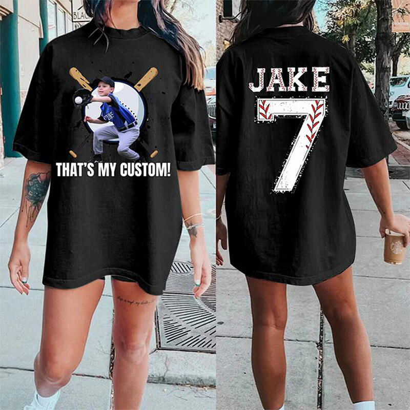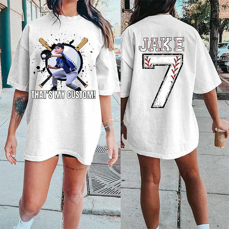 Personalized T-shirt That's My Boy Custom Photo Baseball Pattern Design Perfect Baseball Mom Gift