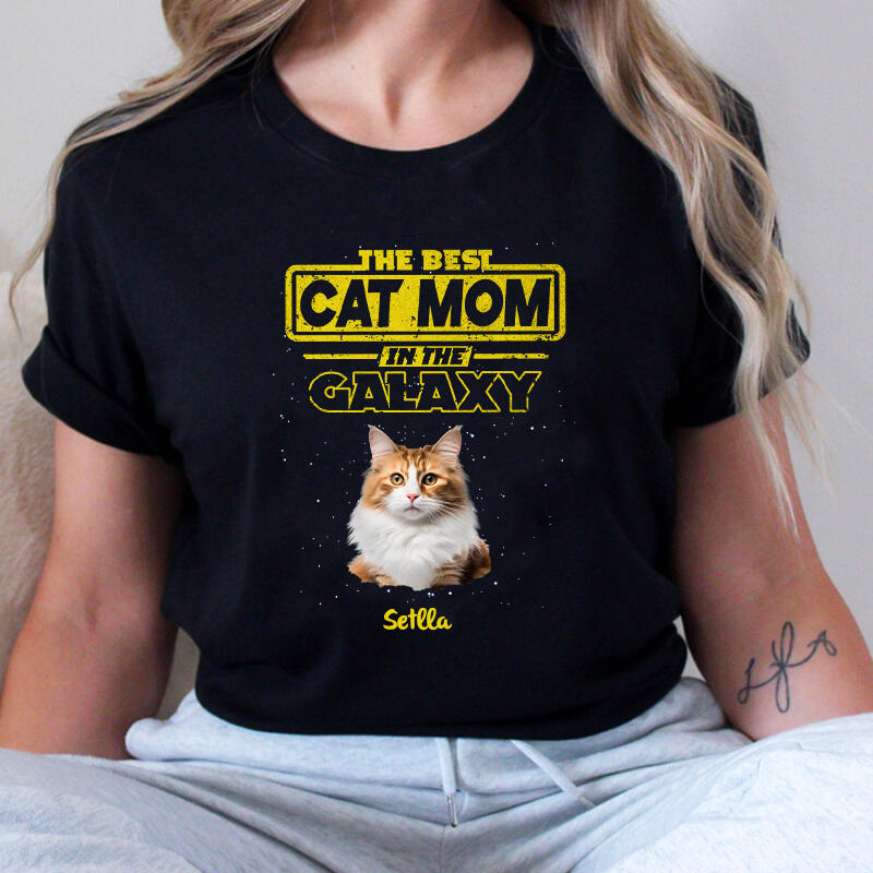 Personalized T-shirt The Best Cat Dad and Mom In The Galaxy Custom Photo Great Gift for Pet Lovers