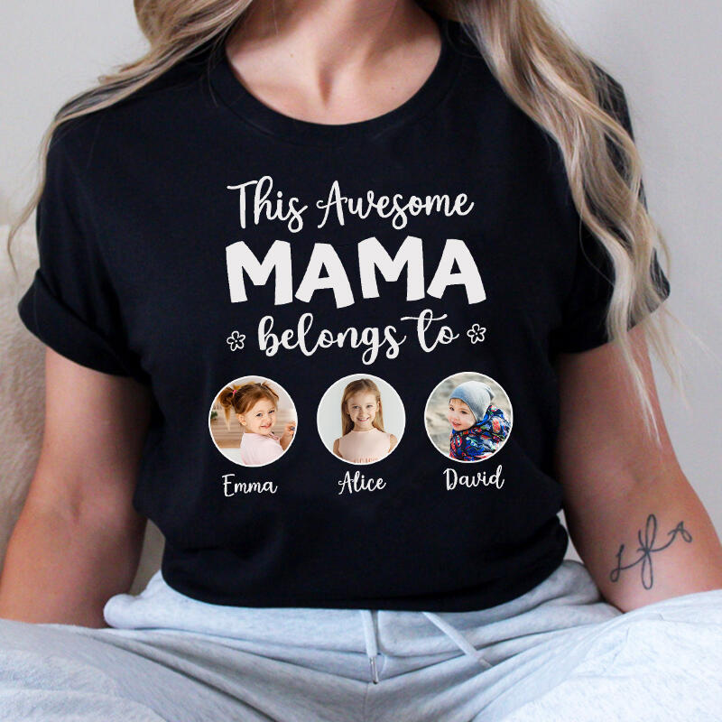 Personalized T-shirt This Awesome Mama Belongs To with Custom Photos Perfect Mother's Day Gift