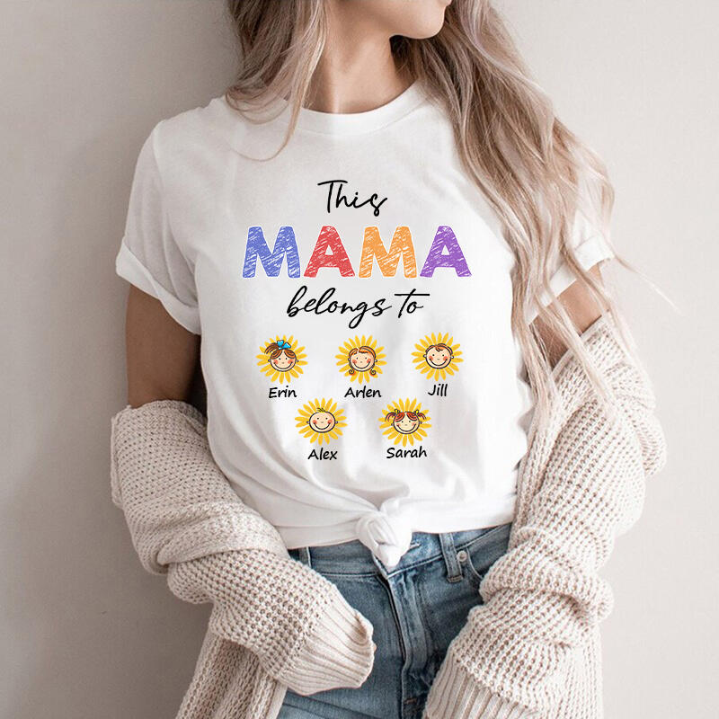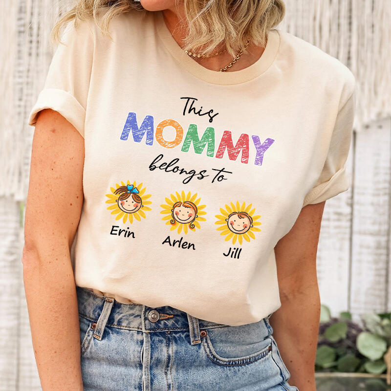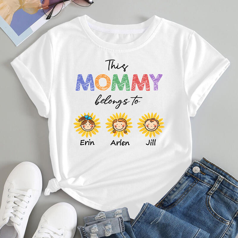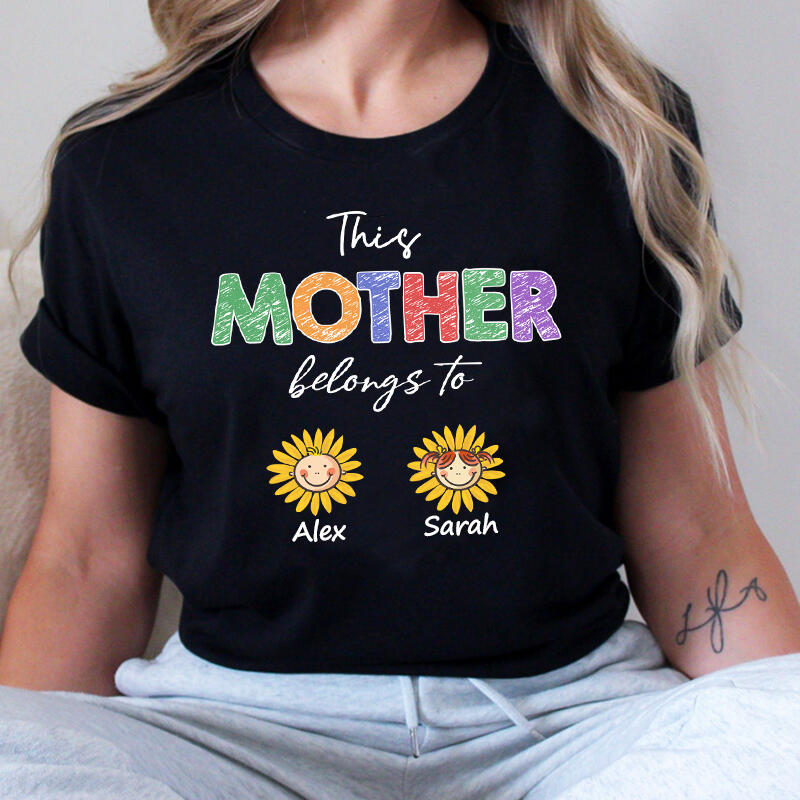 Personalized T-shirt This Mom Belongs To Kids Custom Sunflower Design Perfect Mother's Day Gift