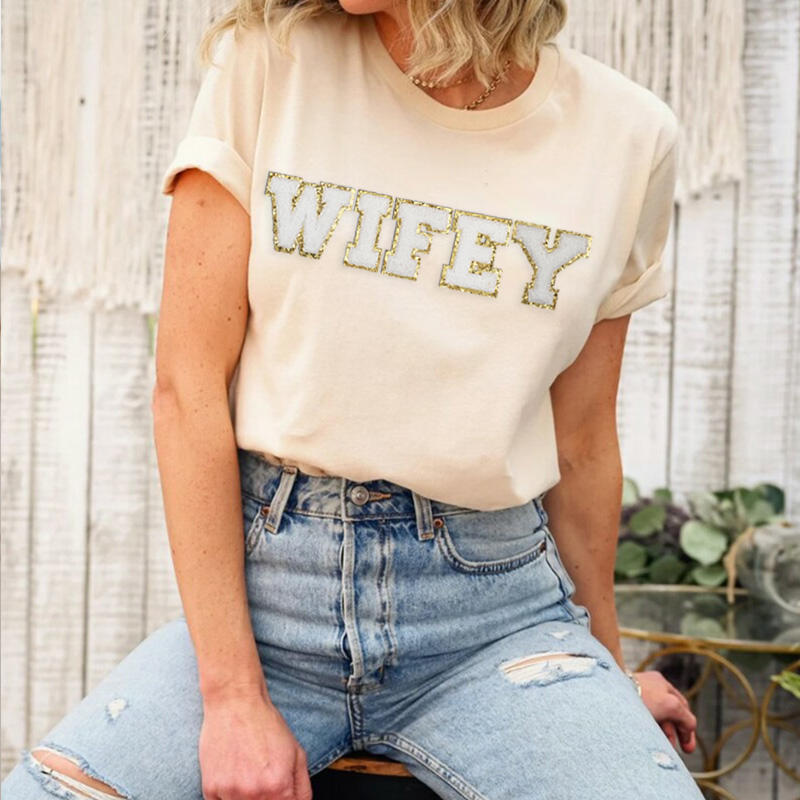 Personalized T-shirt Wifey with Custom Word Cozy Patch Design Attractive Gift for Her