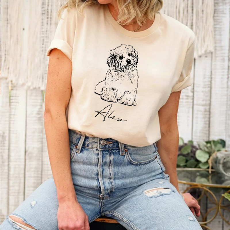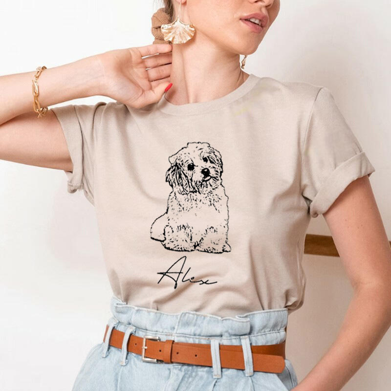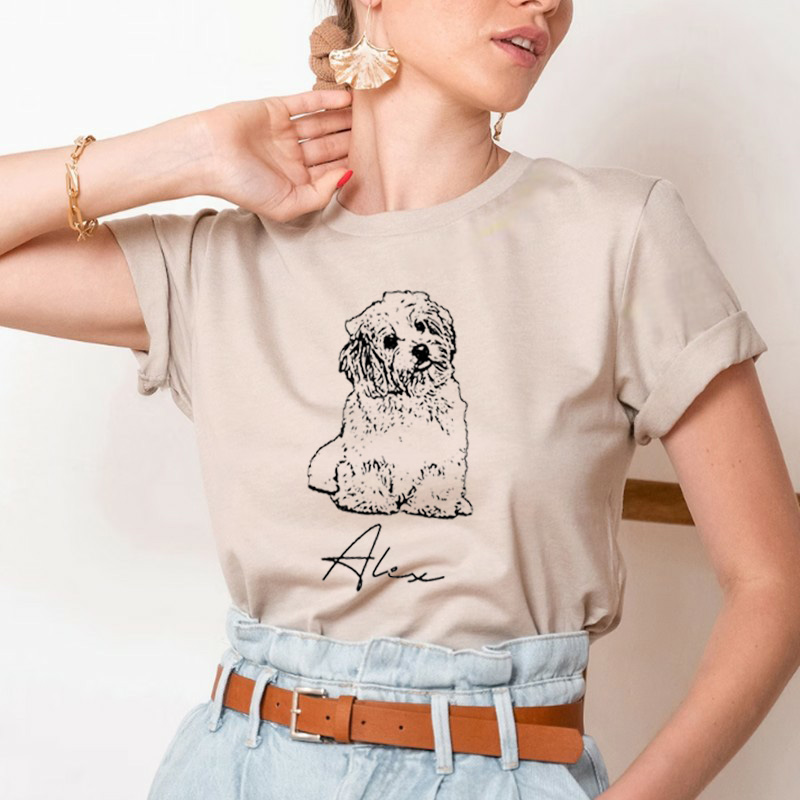 Personalized T-shirt with Custom Pet Sketch Picture for Pet-loving Mom