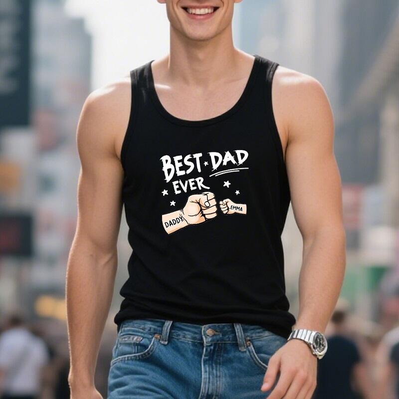 Personalized Tank Top Best Dad Ever Fist Bump Design Attractive Gift for Father's Day