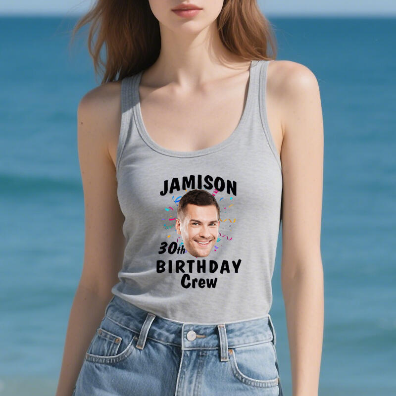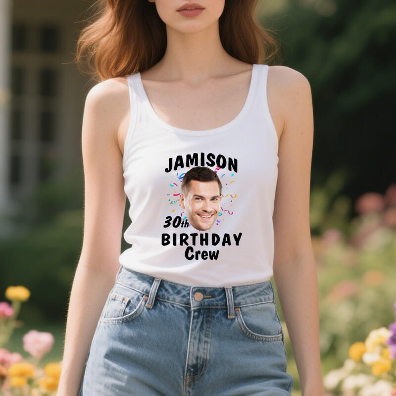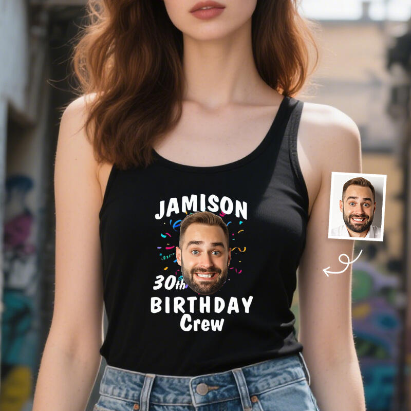 Personalized Tank Top Birthday Crew Custom Photo Funny Party Outfits Design Gift for Friend