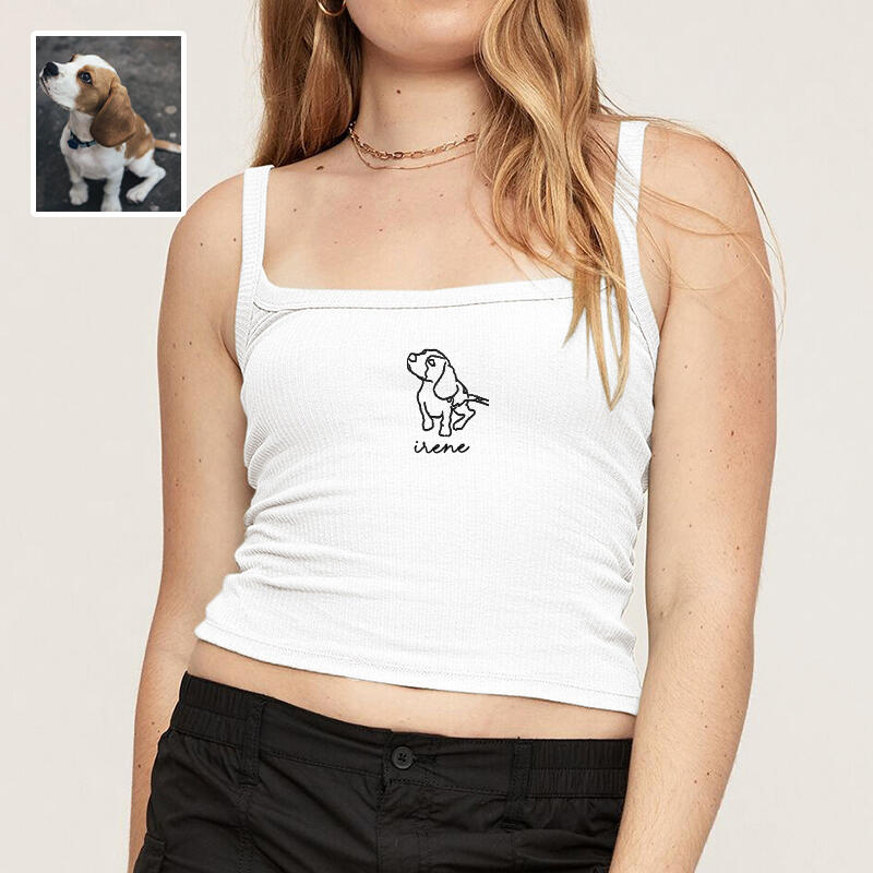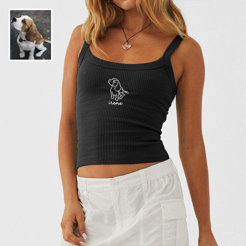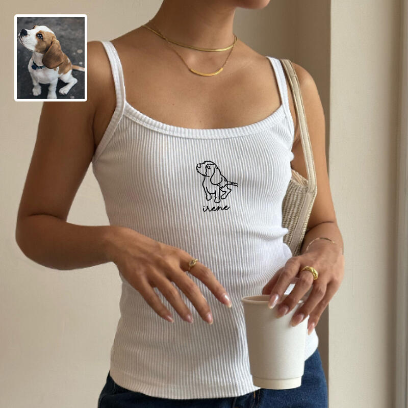 Personalized Tank Top Embroidered Camisole Custom Pet Photo Line Design Perfect Gift for Pet Lovers