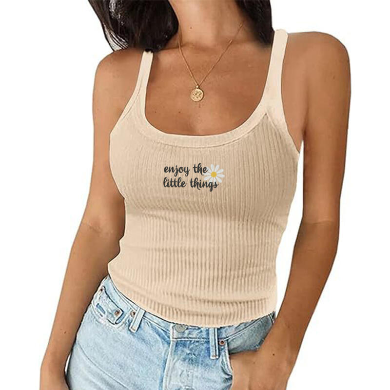 Personalized Tank Top Embroidered Camisole Enjoy The Little Things Daisy Design Exquisite Gift for Her