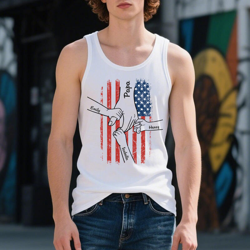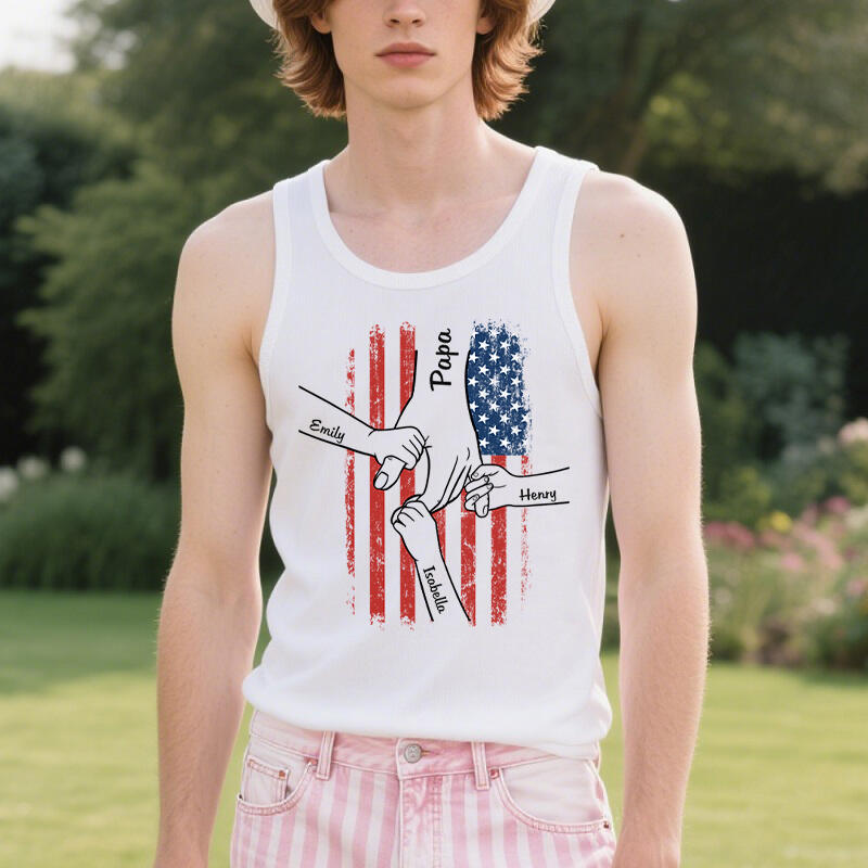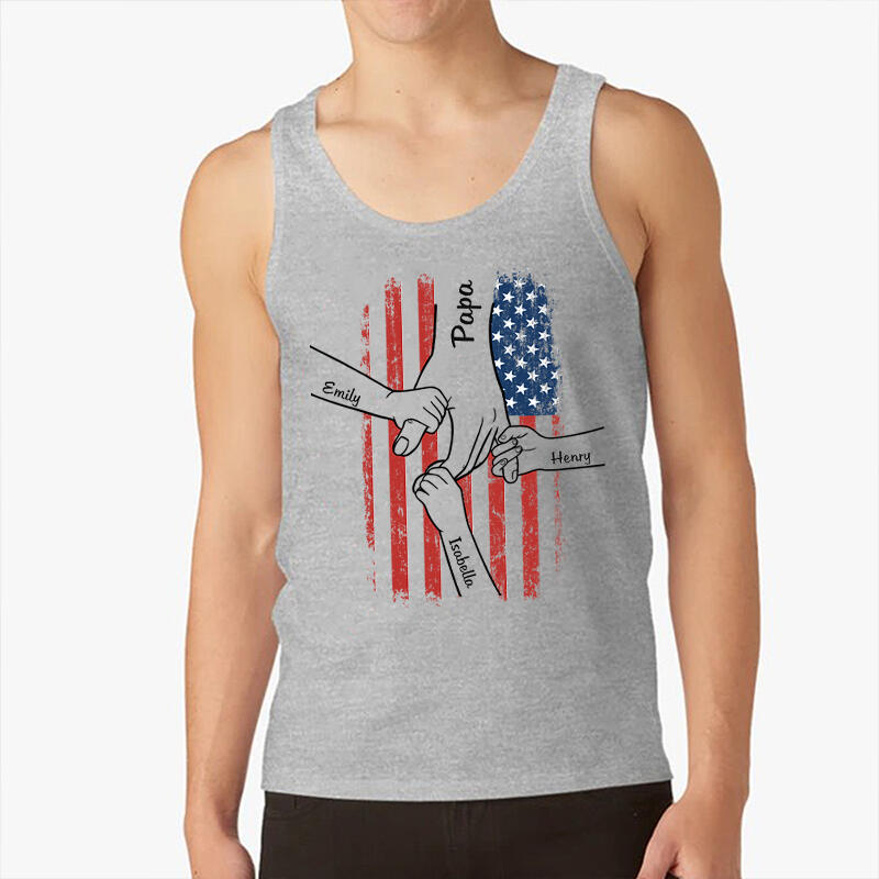 Personalized Tank Top Hold Your Hand Stars and Stripes Element Design Gift for Father's Day