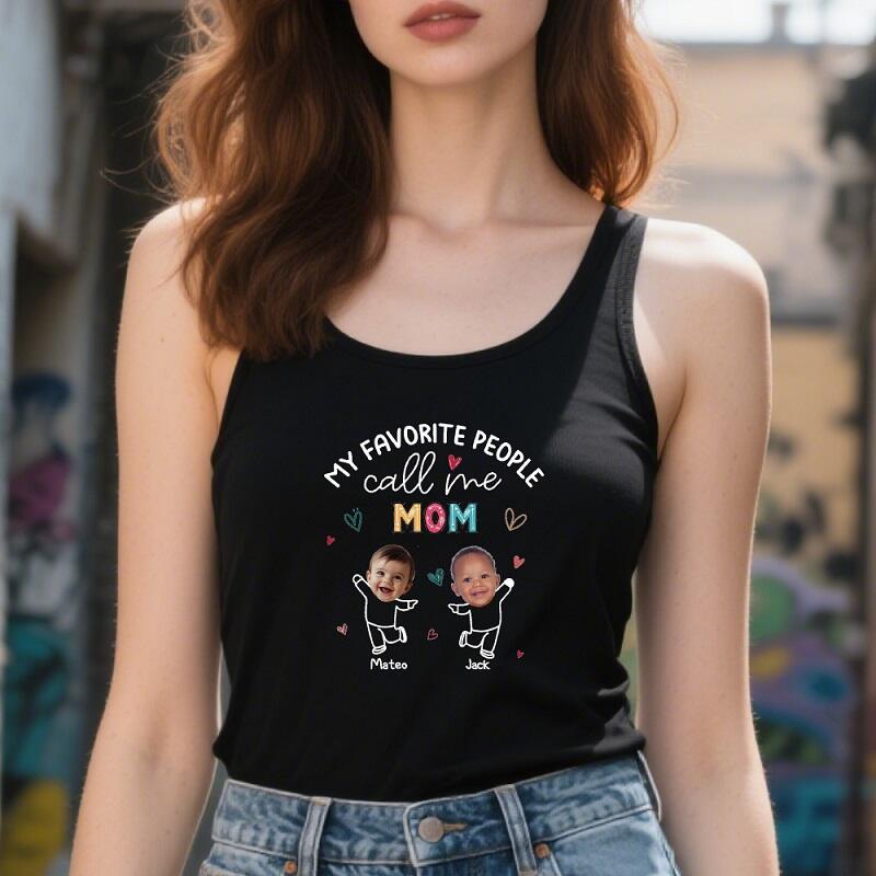 Personalized Tank Top My Favorite People Call Me Mom Custom Photo Cute Gift for Mother's Day