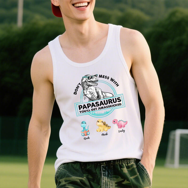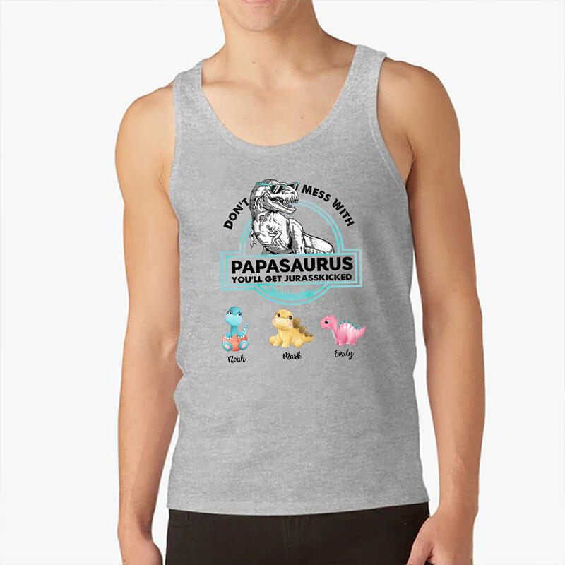 Personalized Tank Top Papasaurus Custom Baby Dinosaurs Pattern Design Perfect Father's Day Gift