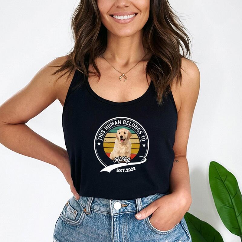 Personalized Tank Top This Human Belongs To Custom Photo Design Creative Gift for Pet Lover