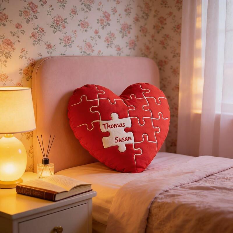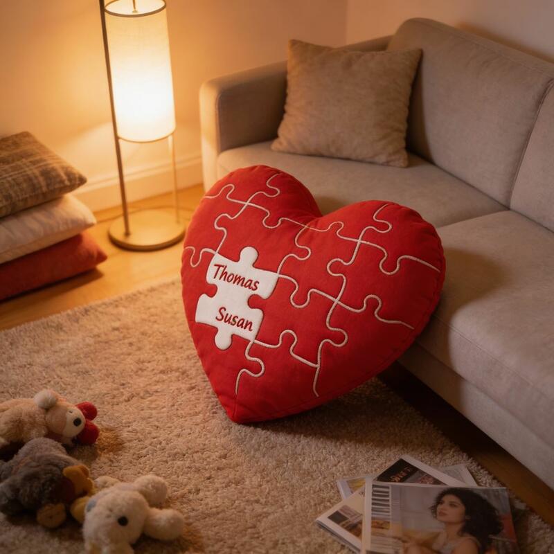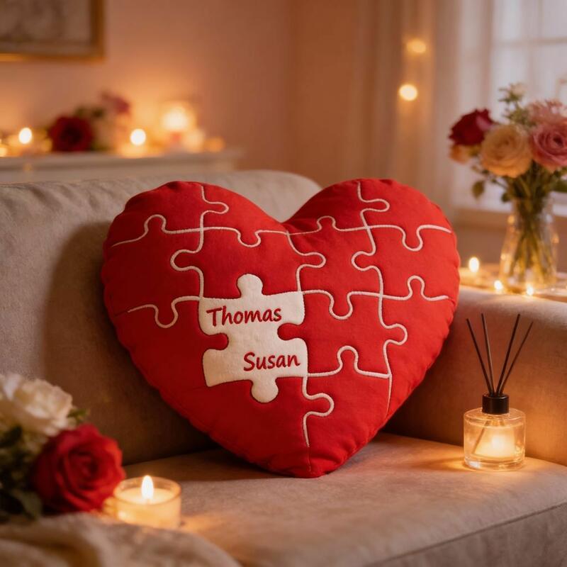 Personalized Throw Pillow with Heart Puzzle Design Sweet Fabric Decoration for Couples