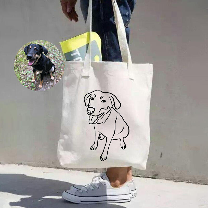 Personalized Tote Bag with Custom Pet Line Outline Picture for Pet Lover