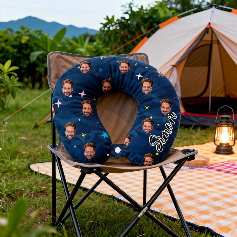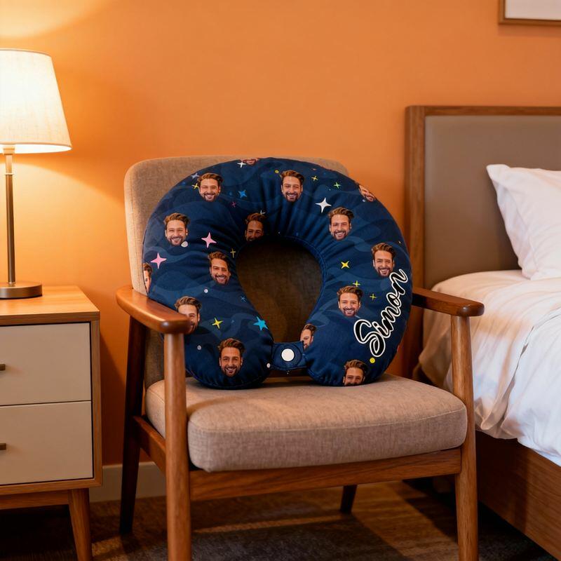 Personalized U-Shaped Neck Pillow Custom Photo Starry Sky Style Design Vacation Gift for Family