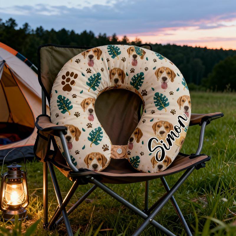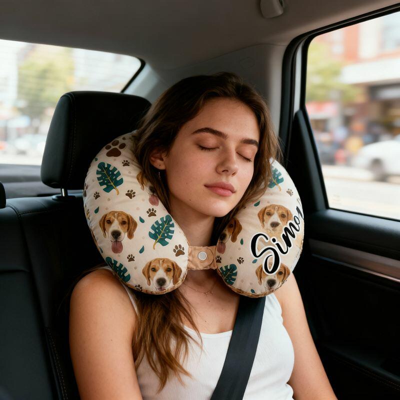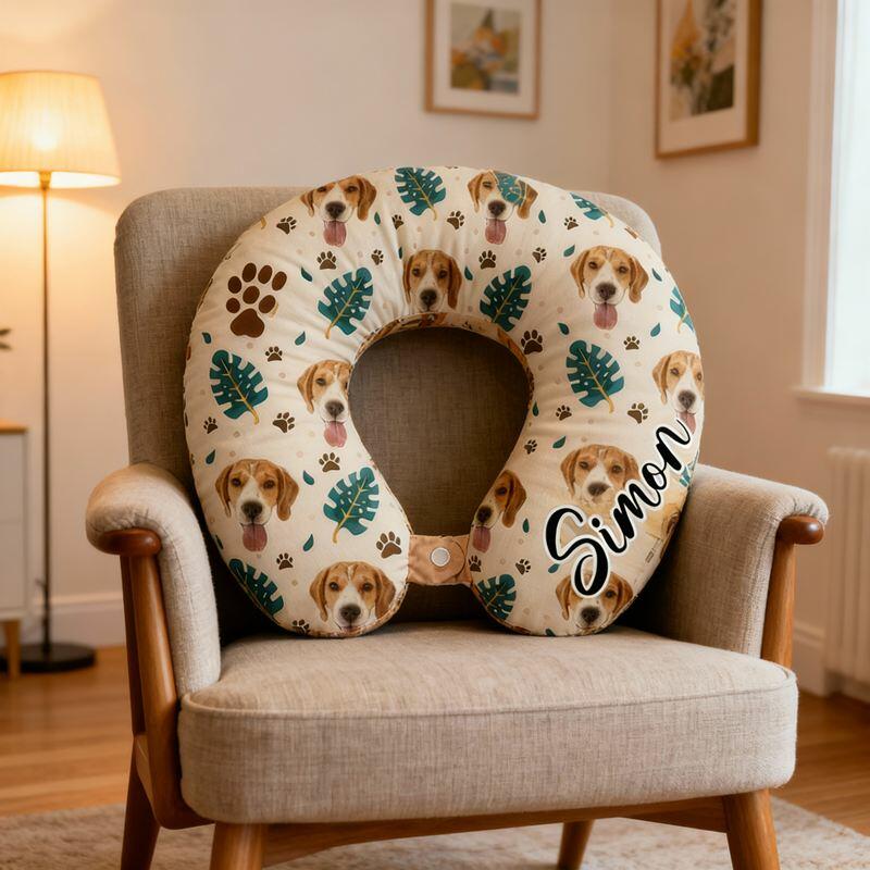 Personalized U-Shaped Neck Pillow Leaves and Paw Prints Design Perfect Travel Gift for Pet Lovers