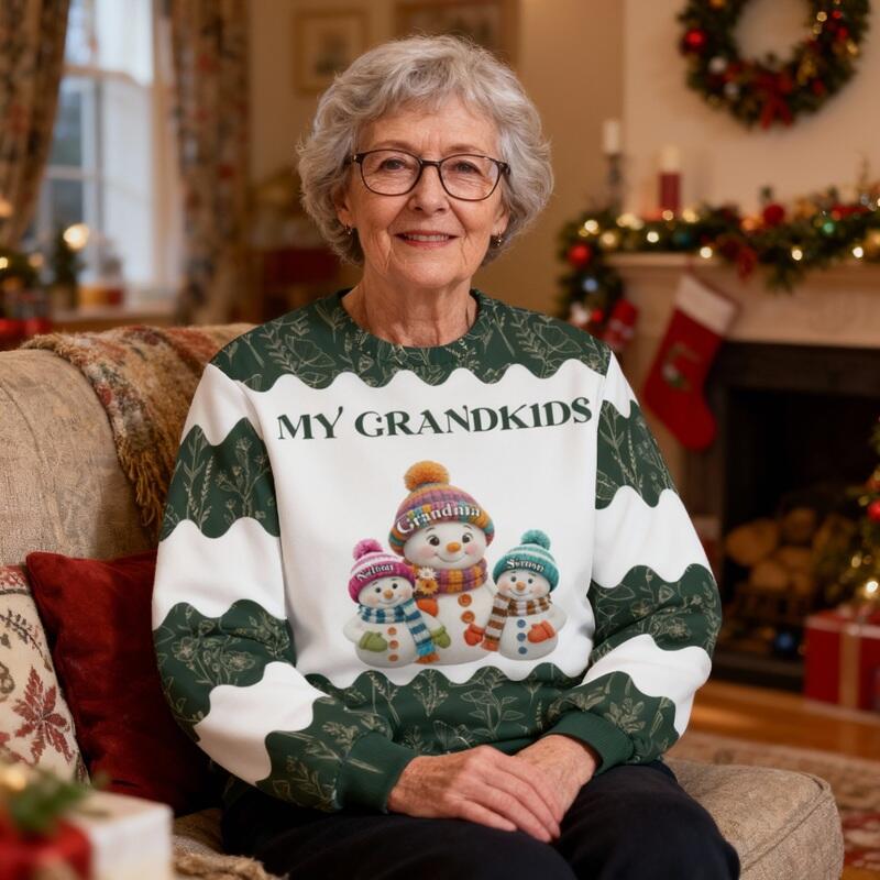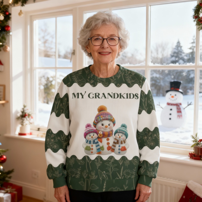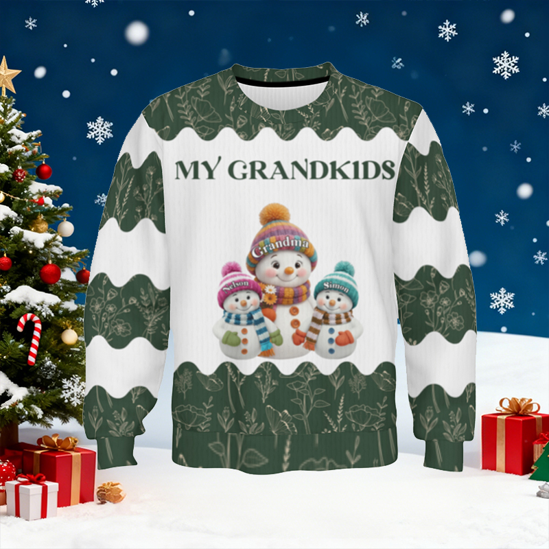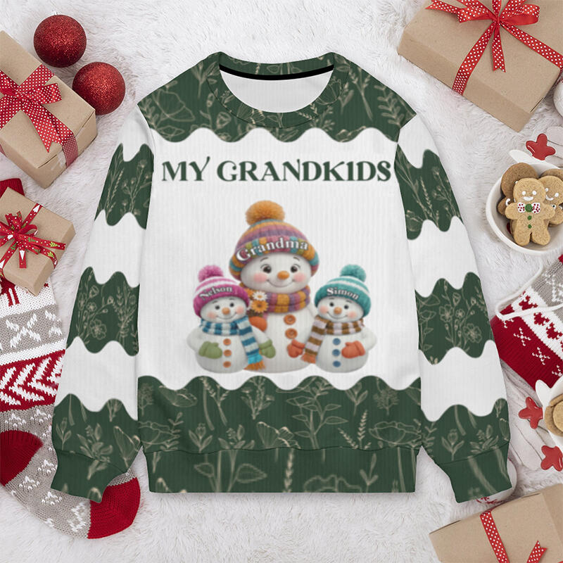 Personalized Ugly Sweater Unisex Custom Cute Snowman Pattern Design Perfect Christmas Gift for Grandparents