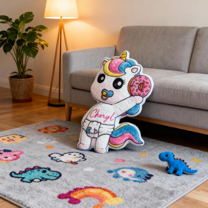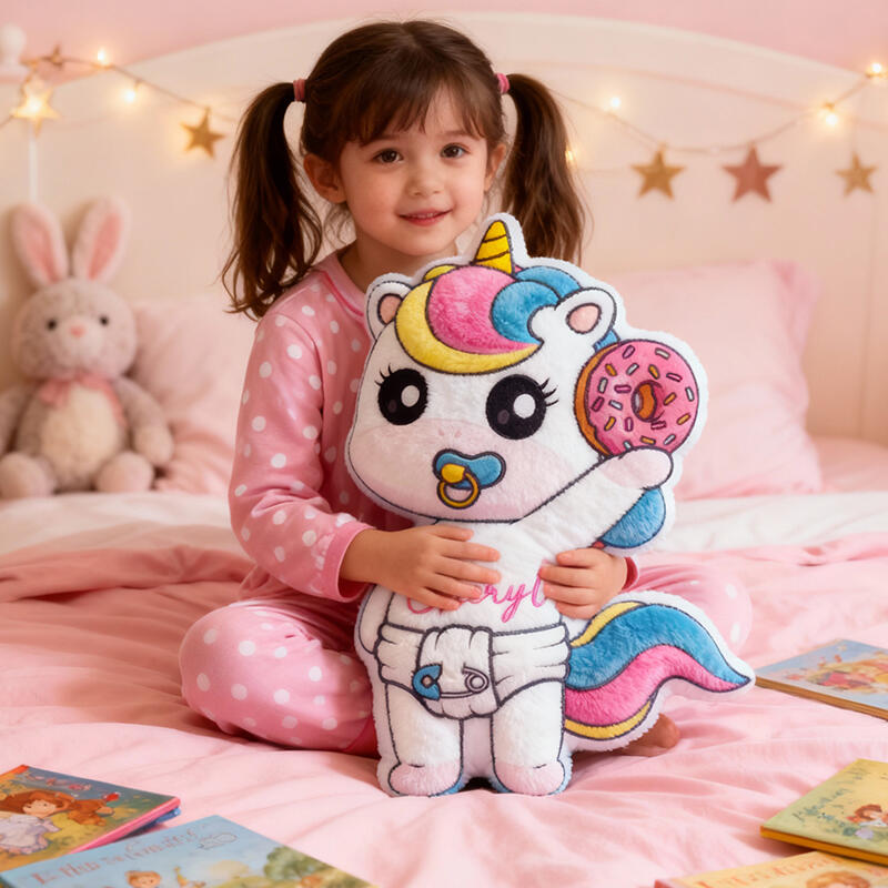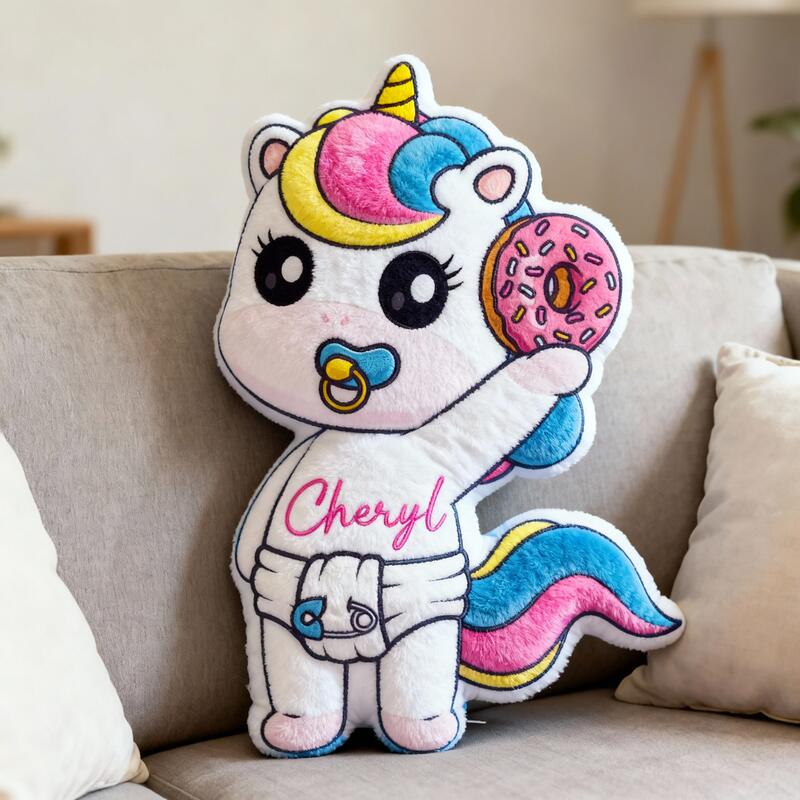 Personalized Unicorn-Shaped Pillow with Donuts Customizable Name Cute Christmas Gift for Girls