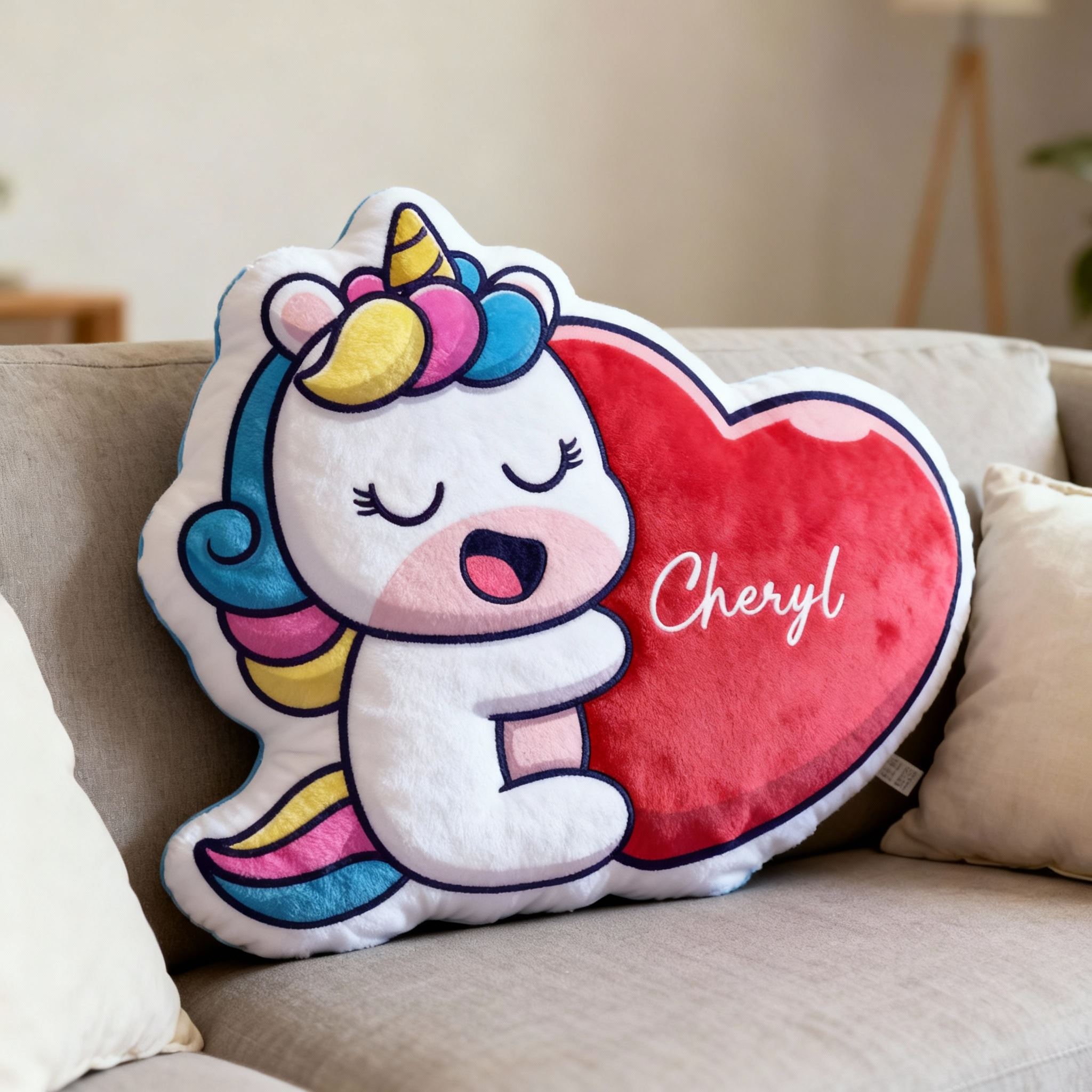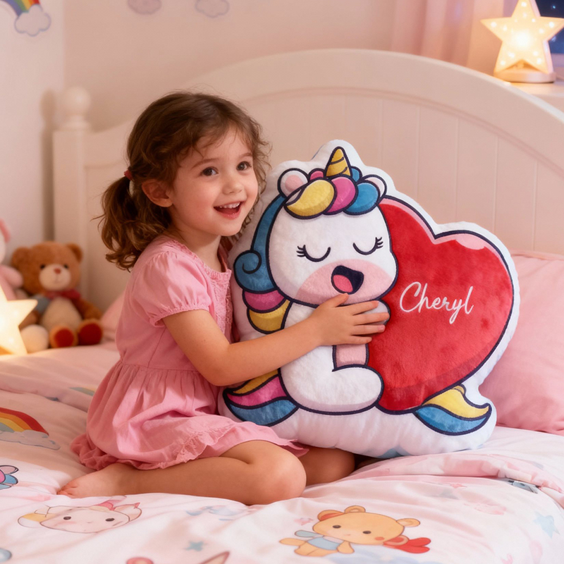 Personalized Unicorn-Shaped Pillow with Heart and Customizable Name Cute Christmas Gift for Children