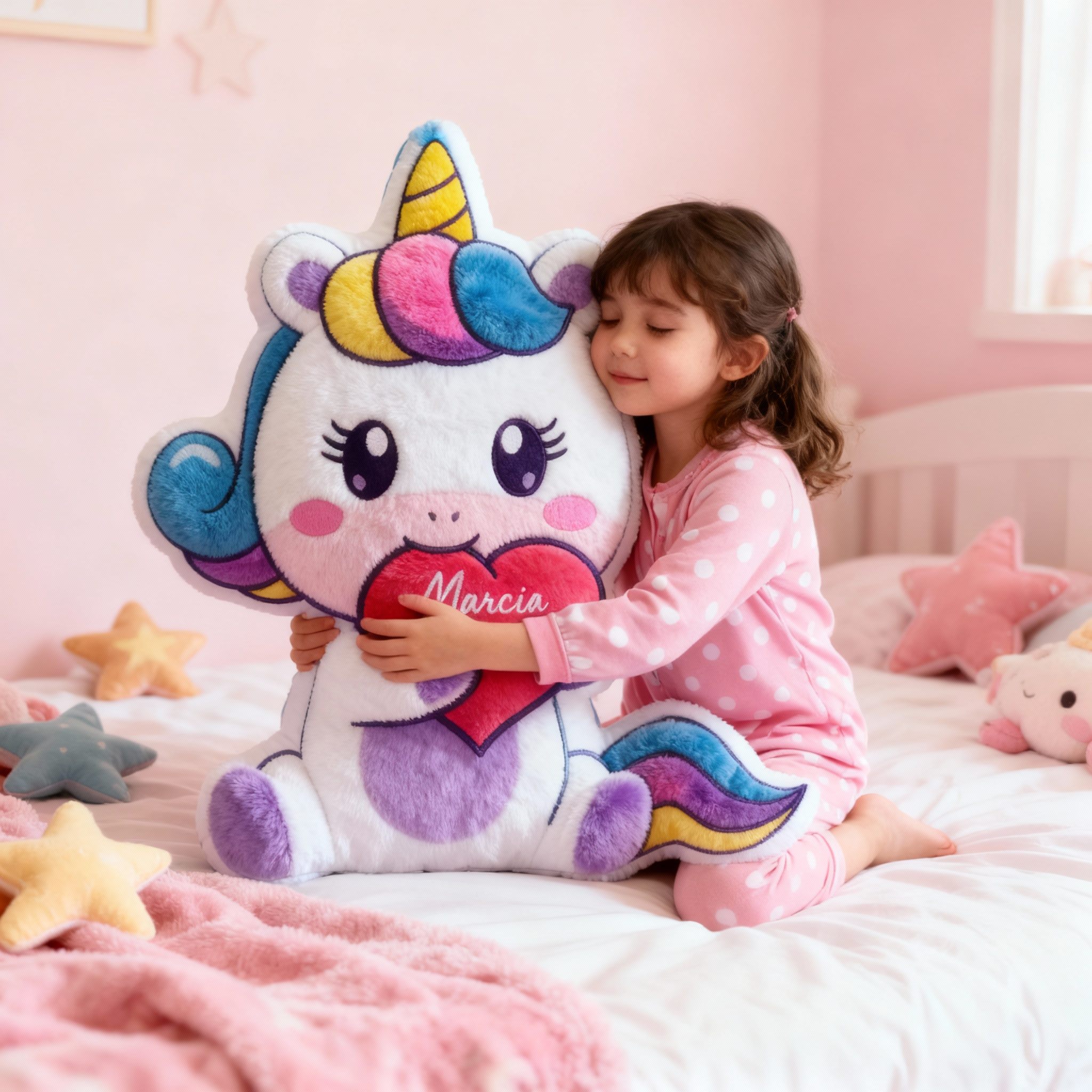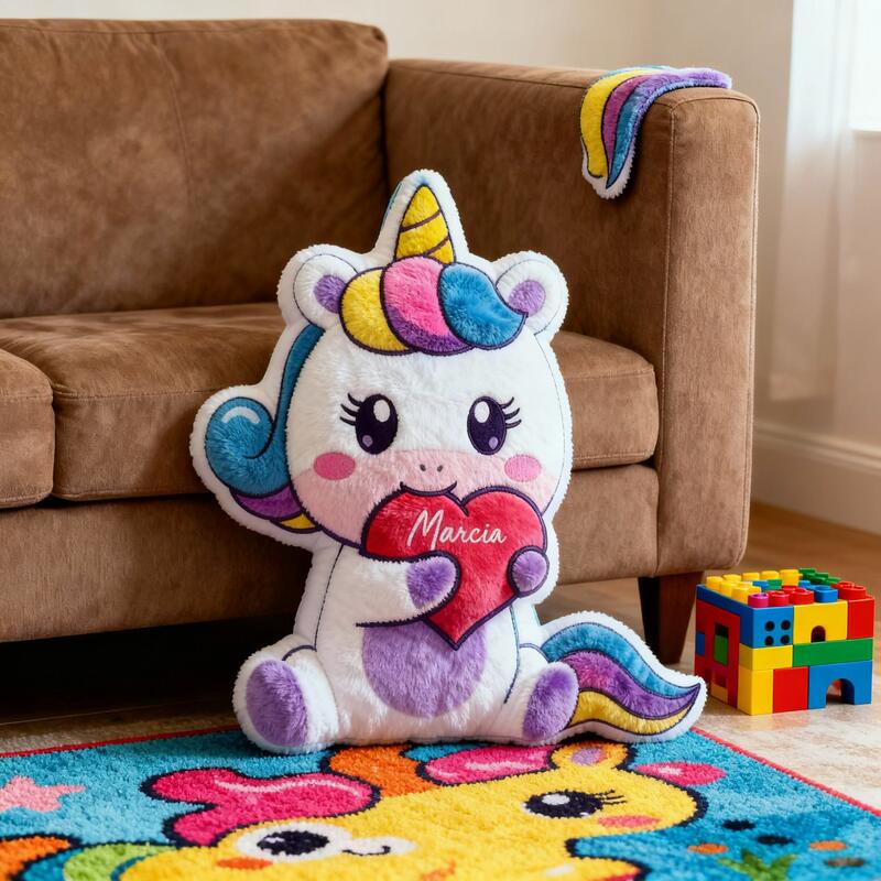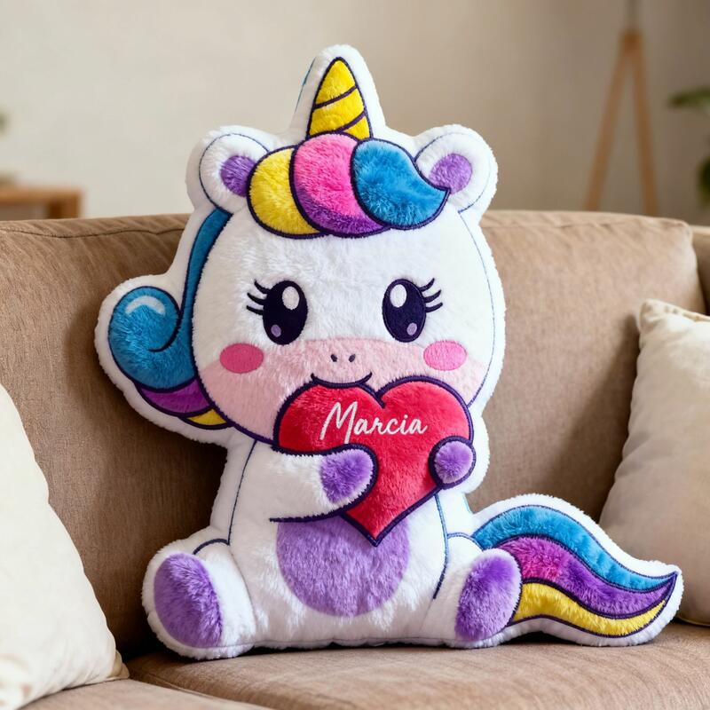 Personalized Unicorn-Shaped Pillow with Red Heart and Custom Name Cute Christmas Gift for Girls
