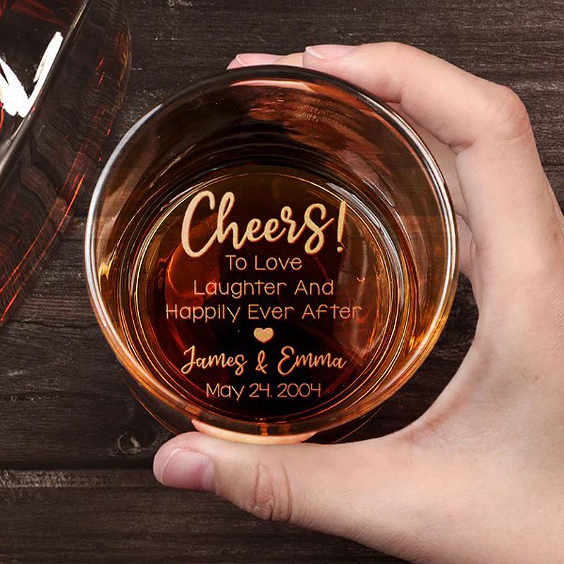 Personalized Whiskey Glass Cheers To Love Laughter & Happily Ever After Gift for Lovers