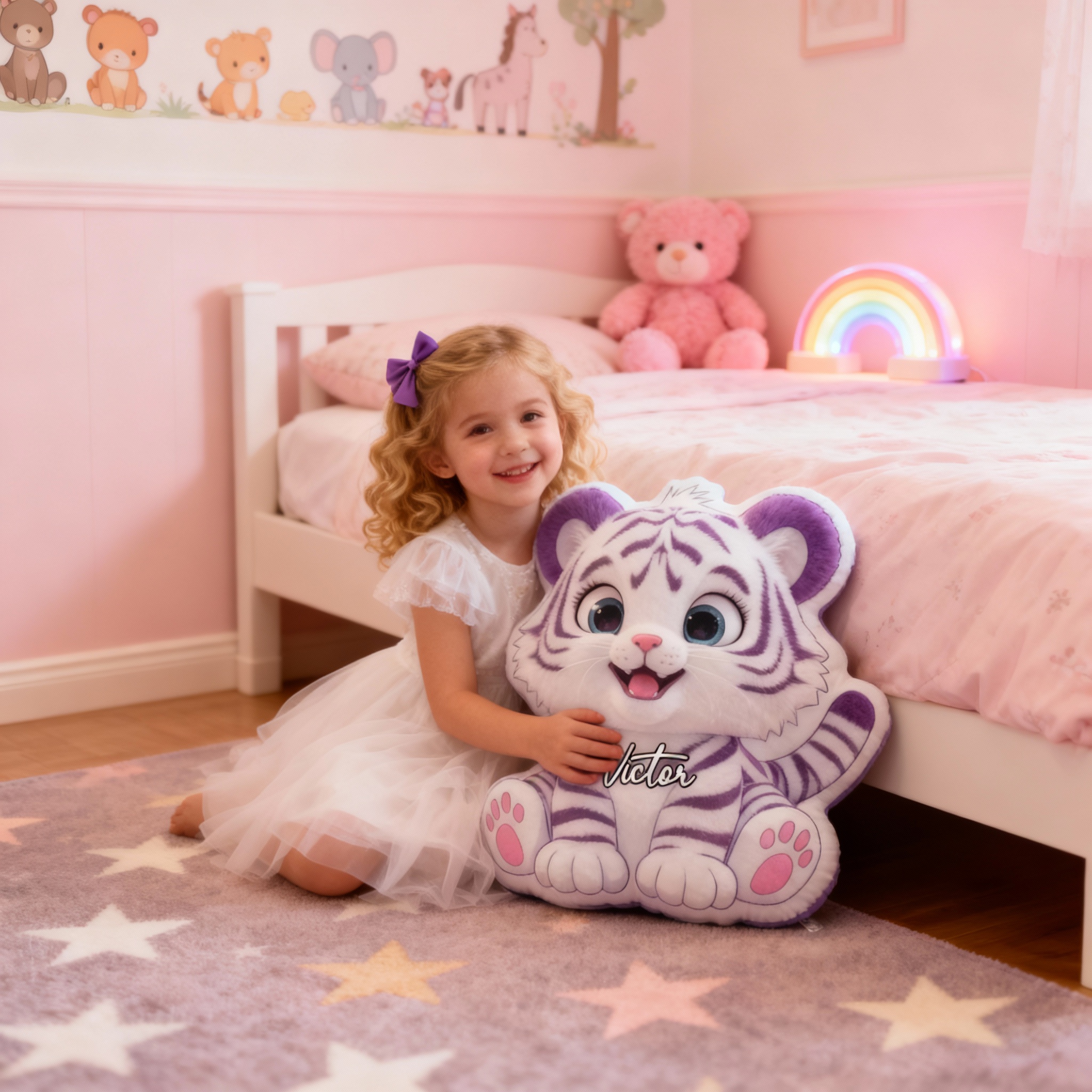 Personalized White Tiger Pillow Add Name Cute Animal Pillow Home Decor for Kids