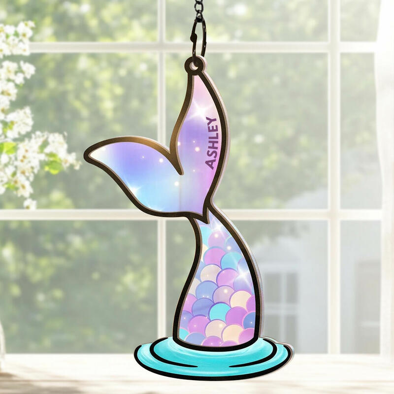 Personalized Window Hanging Suncatcher Ornament Add Name Mermaid Tail