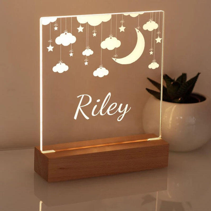 Personalized Wooden Acrylic Moon Cloud Custom Name Lamp for Girlfriend