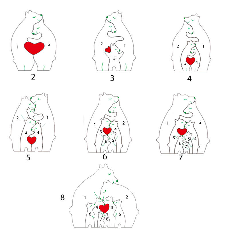 Each of our wooden puzzles is made from high-quality wood and is carefully designed and crafted. We pay attention to every detail to ensure each puzzle is of high quality and durability. One of the features of our wooden puzzles is the ability to customize them with family members' names. You can tell us the names of family members and we will use them to engrave the corresponding places on each puzzle piece. In this way, when you put the puzzle together, each family member's name will appear on the puzzle, showing the warmth of the family and making everyone feel belonging and cared for. We have designed a variety of animal shapes, such as bears, rabbits, kittens, etc. Each animal is carefully carved and painted, lifelike, full of childlike fun and cuteness. These animal-shaped puzzles will bring you a pleasant puzzle experience, while also adding to the decorative nature of the product, making it a beautiful addition to your home.