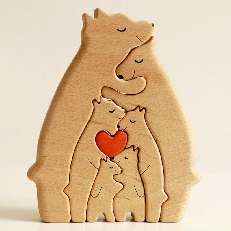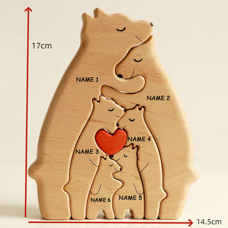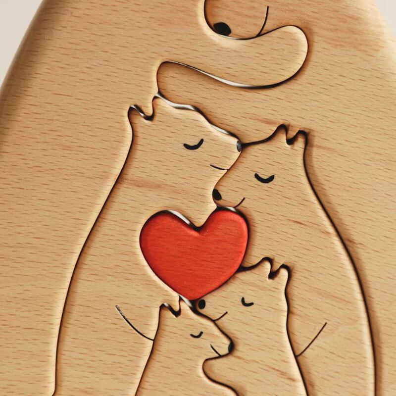 Each of our wooden puzzles is made from high-quality wood and is carefully designed and crafted. We pay attention to every detail to ensure each puzzle is of high quality and durability. One of the features of our wooden puzzles is the ability to customize them with family members' names. You can tell us the names of family members and we will use them to engrave the corresponding places on each puzzle piece. In this way, when you put the puzzle together, each family member's name will appear on the puzzle, showing the warmth of the family and making everyone feel belonging and cared for. We have designed a variety of animal shapes, such as bears, rabbits, kittens, etc. Each animal is carefully carved and painted, lifelike, full of childlike fun and cuteness. These animal-shaped puzzles will bring you a pleasant puzzle experience, while also adding to the decorative nature of the product, making it a beautiful addition to your home.