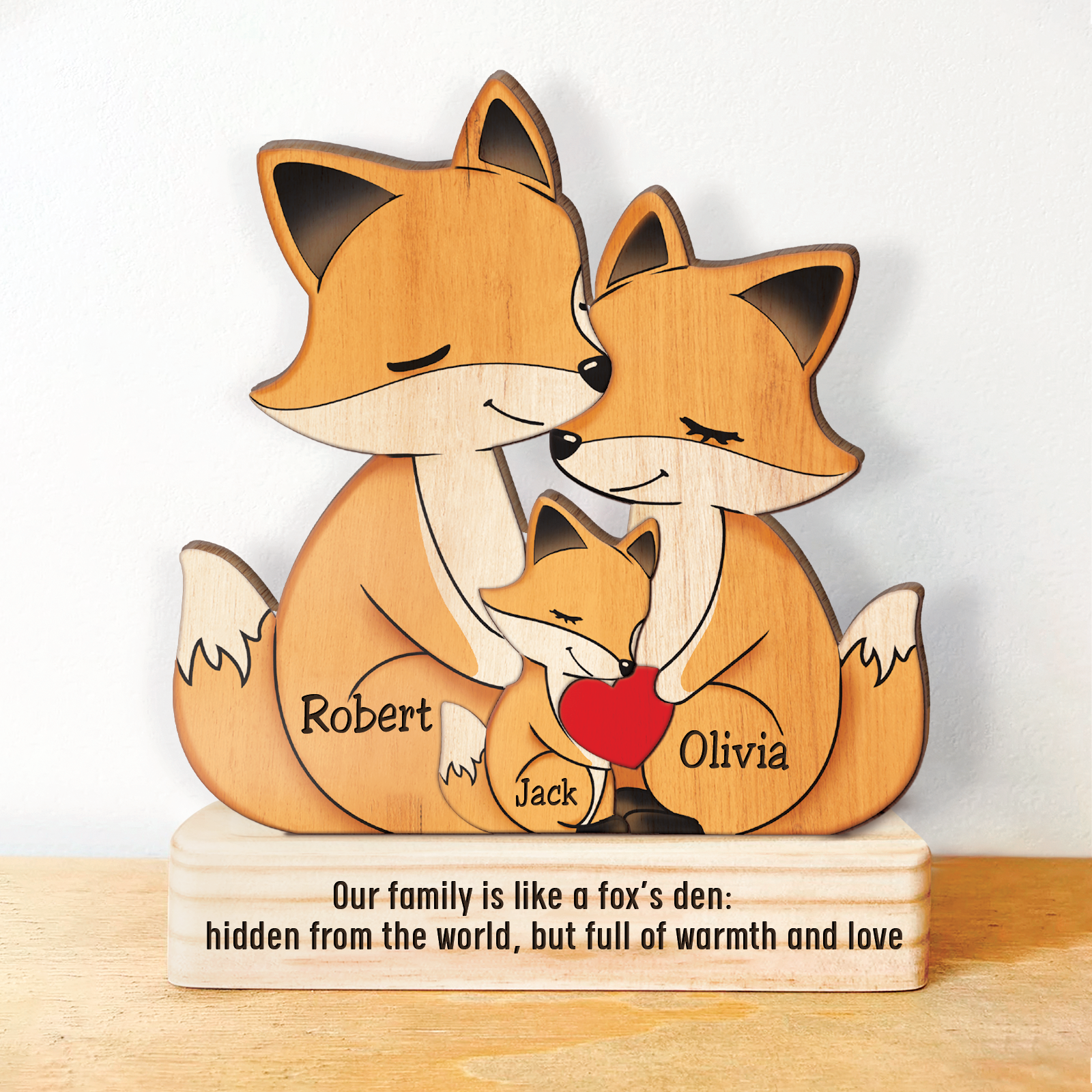 Personalized Wooden Fox Family Puzzle Cute Gift For Christmas