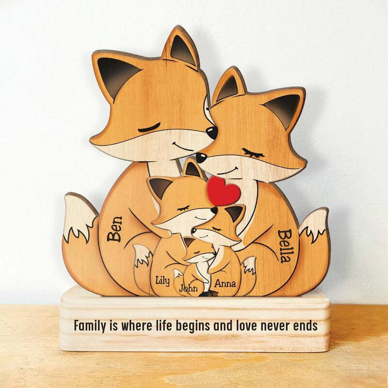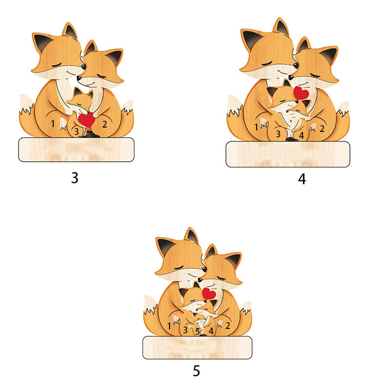 Personalized Wooden Fox Family Puzzle Cute Gift For Christmas